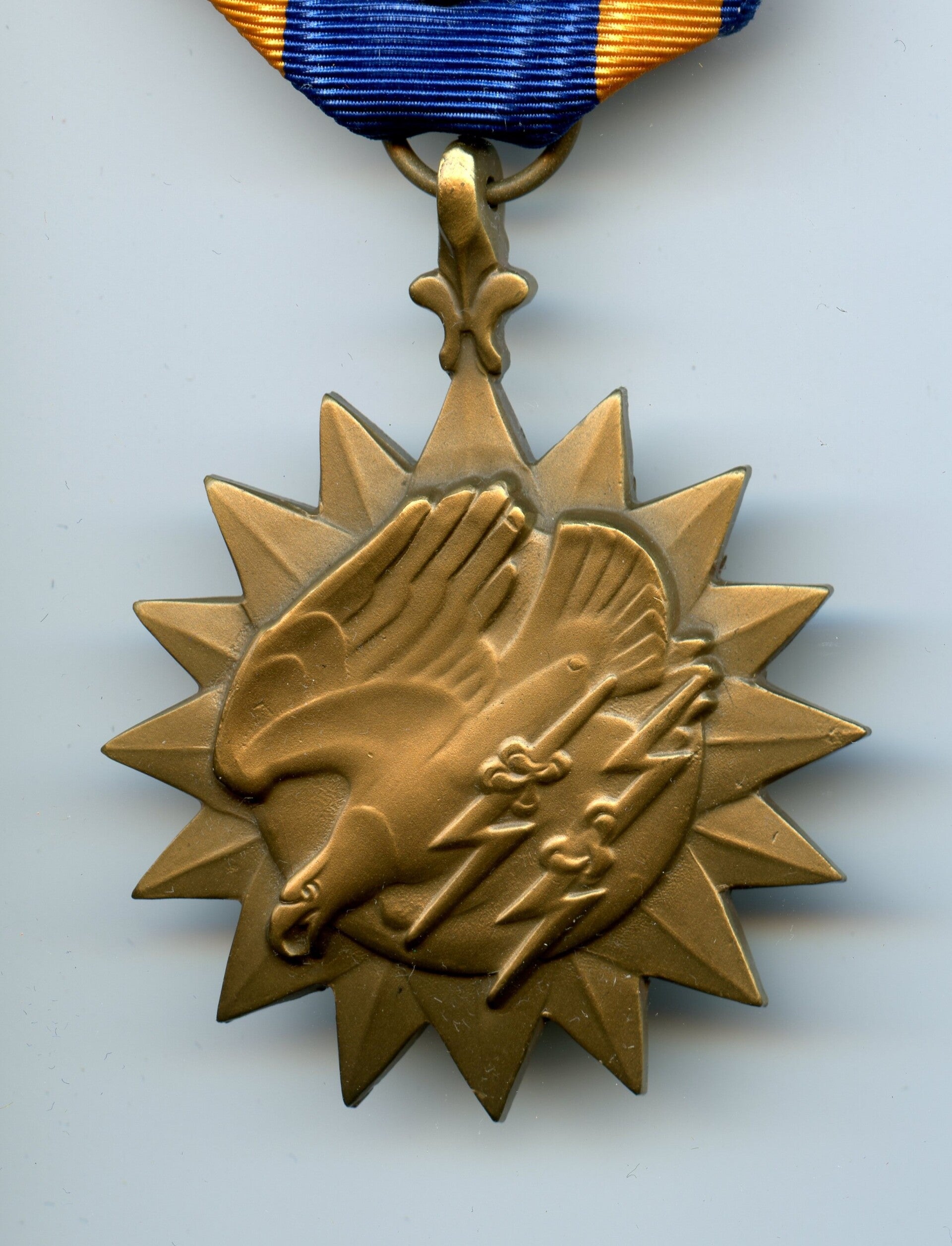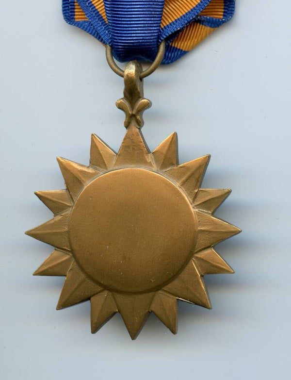A nice original Post WW2 Air Medal with four oakleafs devices.The medal comes with a crimp brooch, indicating post WW2 production. Very nice Air Medal in near mint condition! No repairs, no damage.