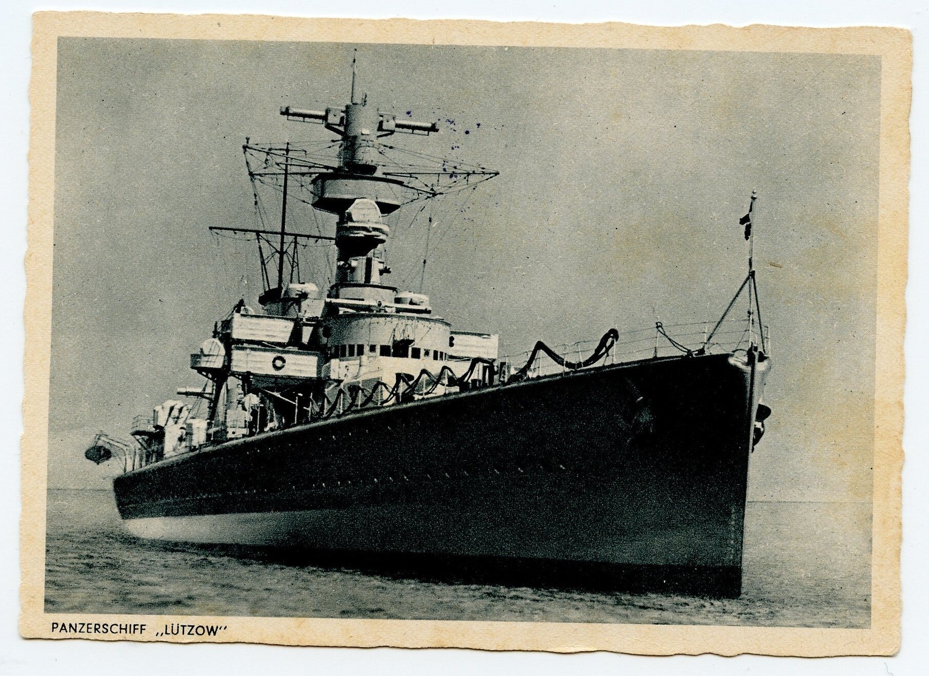 Very nice Postcard of the Kriegsmarine Panzerschiff Lützow. Postcard size. Good clean condition and stamped on the reverse. No repairs, no damage.