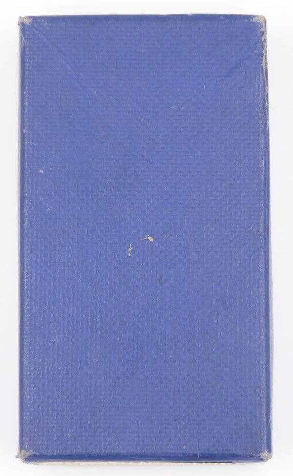 WW2 original complete Cased Good Conduct Medal. The medal comes in its original box of issue, which remains in good condition. Next to the medal, the box also contains the original lapel pin, ribbon bar and wrapping paper. The medal has a slot brooch mechanism and remains in an excellent near mint condition. Nice set! No repairs, no damage.