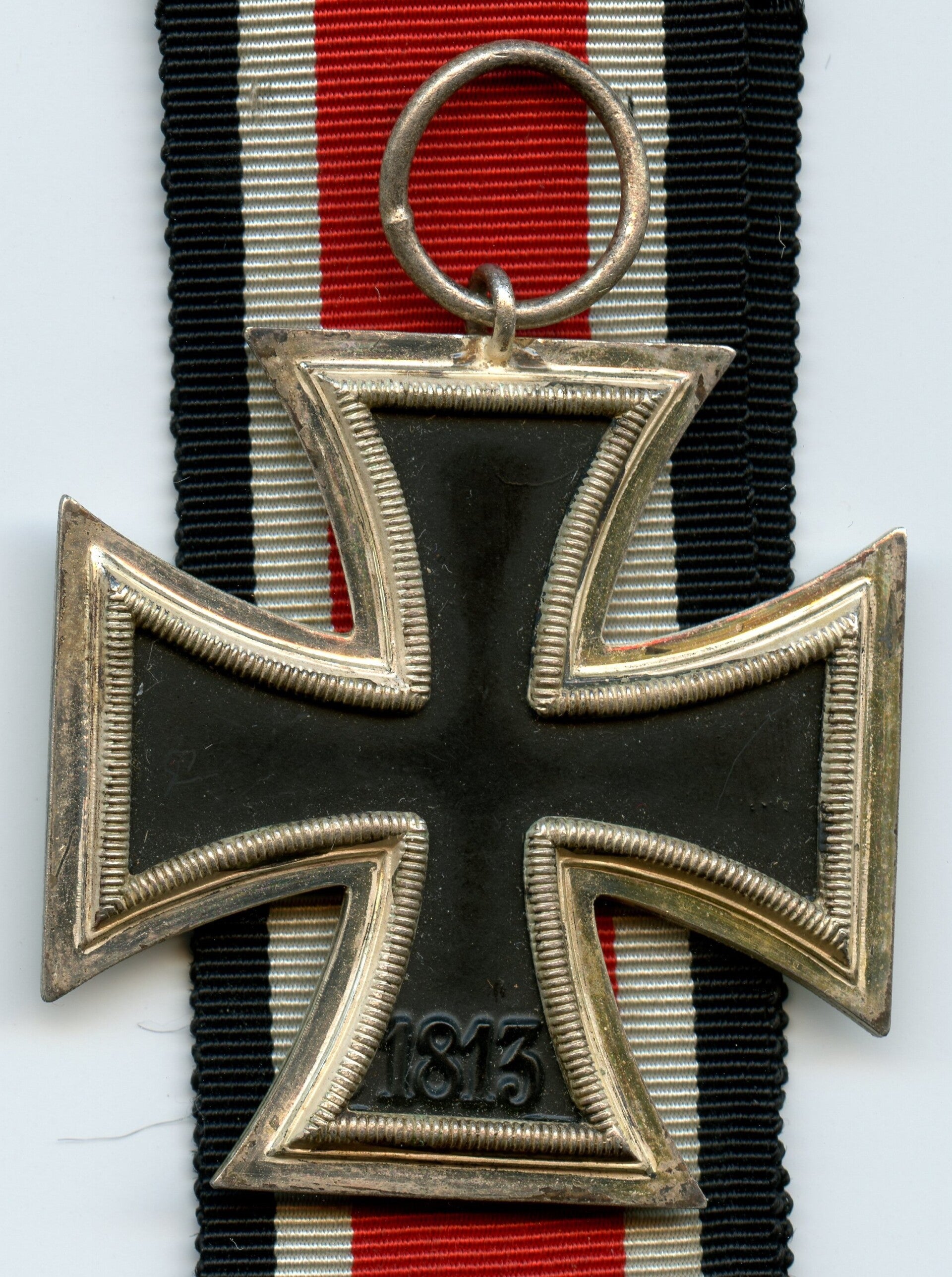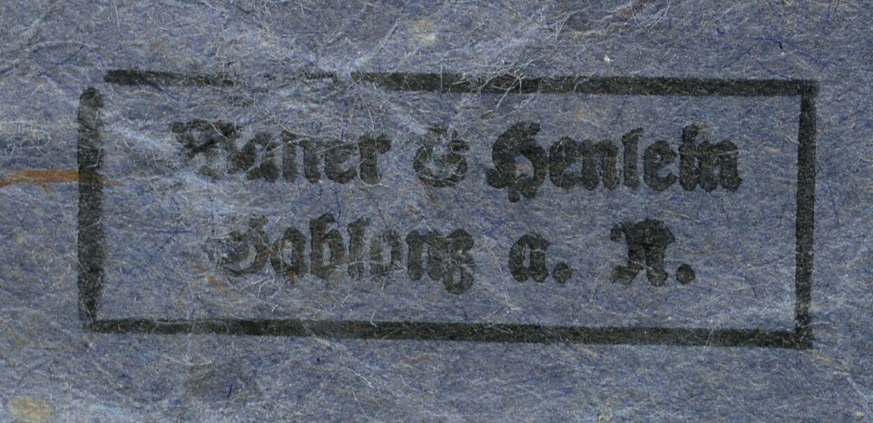 Beautiful unmarked Iron Cross 2nd class with package produced by Walter & Henlein, Gablonz an der Neiße. The cross comes with its original ribbon and remains in an excellent condition. The cross has a beautiful patina and the so called "Hochpolierte Kanten". The Cross comes together with its original package of awarding. The package has little damage on the bottom left corner and is marked "Walter & Henlein Gablonz a N". Very nice typical Walter & Henlein set! No repairs, no damage.