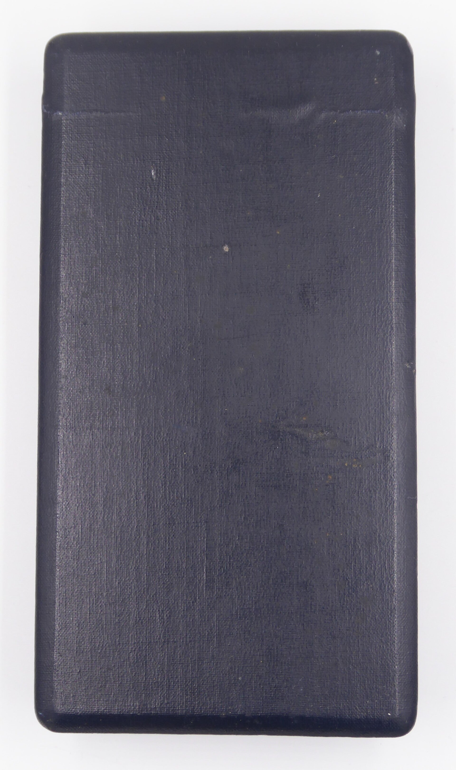 An original complete WW2 numbered cased Purple Heart medal. The medal comes in its original case of issue together with its lapel pin and ribbon bar. The medal comes with a slot brooch mechanism, and is numbered on the left rim with "341180" indicating the Purple Heart was produced in 1942 by the Rex Products Company. The medal, ribbon bar and lapel pin are in excellent worn condition. The case remains in a good used condition. Excellent hard to find set in nice worn condition! No repairs, no damage.