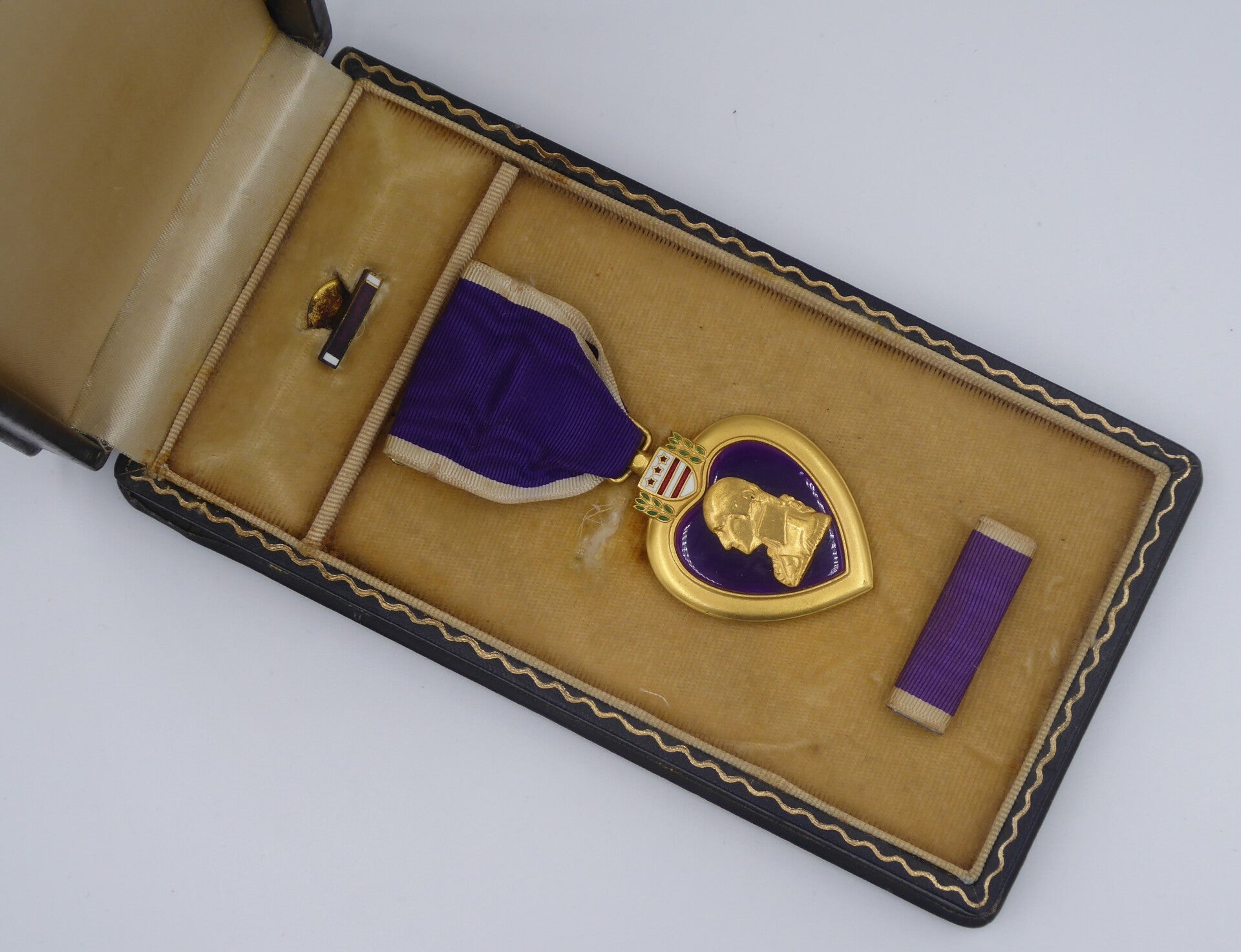 WW2 Cased Numbered Purple Heart Medal '341180' 1942 (Rex Products Co.)