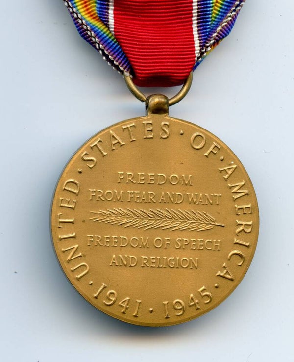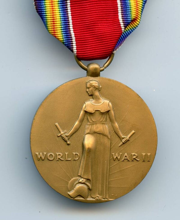 WW2 Original victory medal. The medal comes with its period original slot brooch mechanism and ribbon. Great medal in near mint condition. No repairs, no damage.