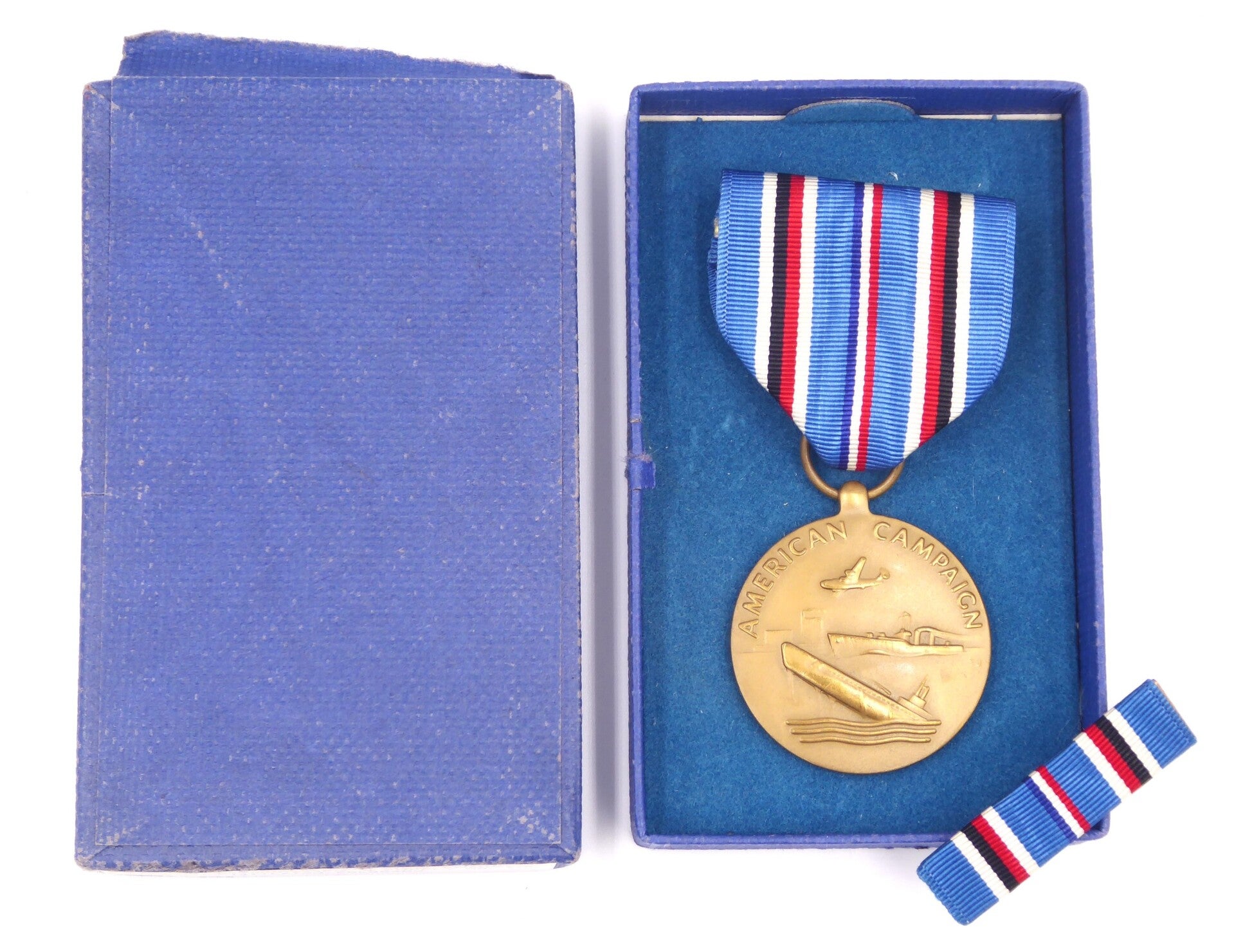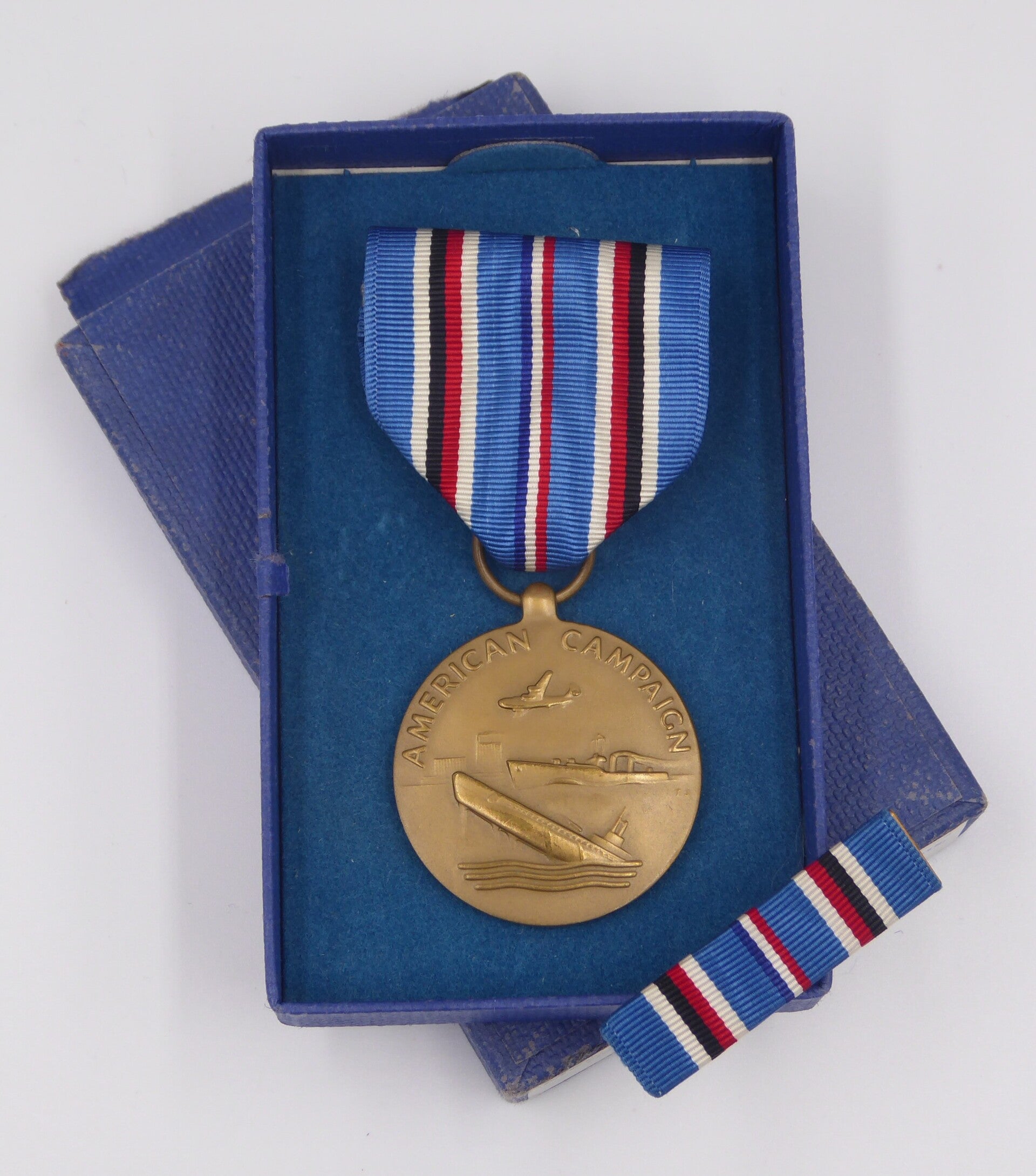 Nice WW2 original Cased American Navy Campaign Medal. The medal comes in its original blue box of issue which remains in great condition. The medal comes with a period original crimp brooch mechanism. Great American Navy Campaign set! No repairs, no damage.