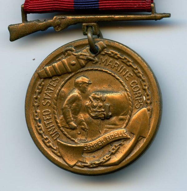 WW2 original Named USMC Good Conduct Medal with Second Award Bar. The medal remains in great condition. The medal has a period original "Lock Catch" mechanism and is government engraved "Robert M. Jones 1945". No further research has been done on Jones so this would make an excellent research project. Excellent medal with great research potential! No repairs, no damage.