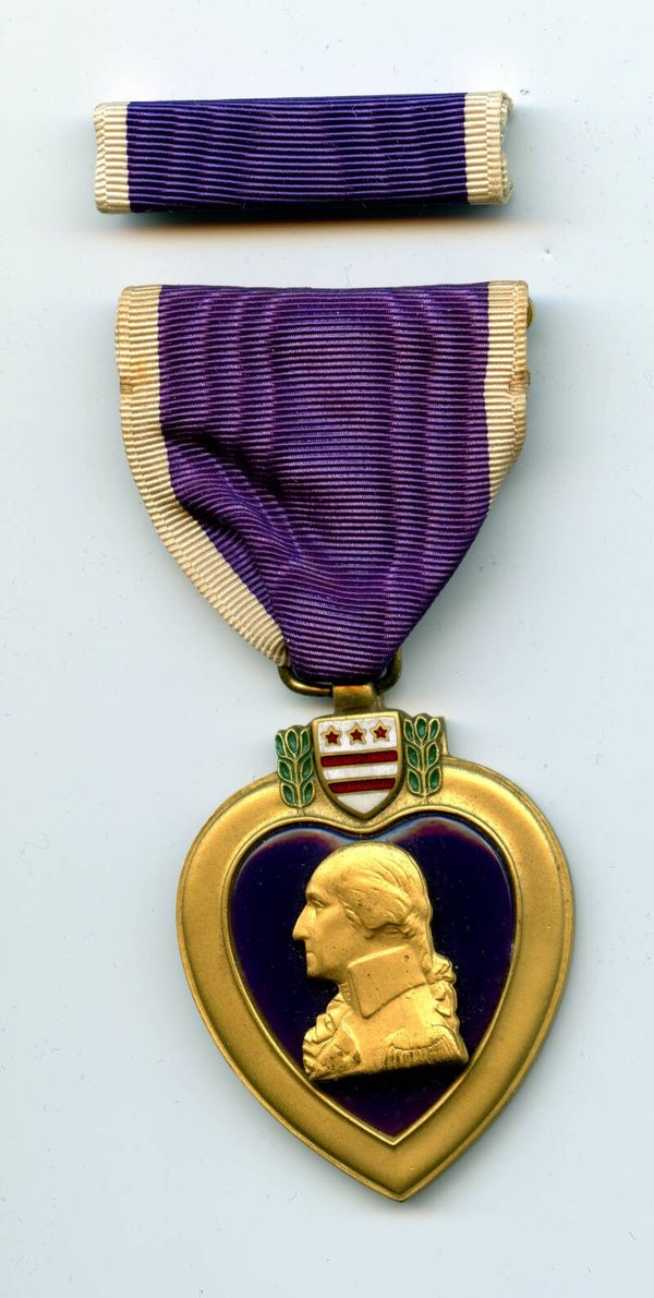 An original WW2 cased Purple Heart medal. The medal comes in its original case of issue together with its ribbon bar. The medal comes with a slot brooch, indicating production during WW2. Great set in great condition! No repairs, no damage.