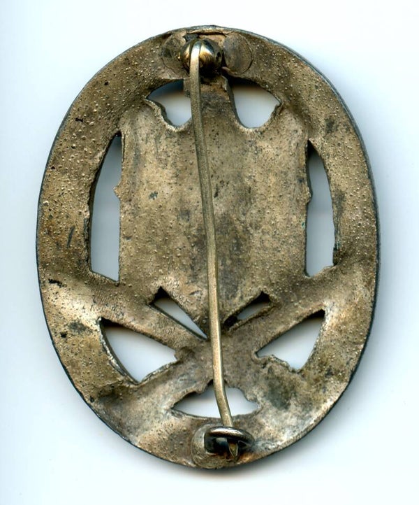Very nice General Assault Badge, produced by Rudolf Karneth, Gablonz. Unmarked, zinc construction with crimped in set up. The badge remains in a great condition with a nice amount of finish still present. Nice and distinct Karneth badge in great condition. No repairs, no damage.