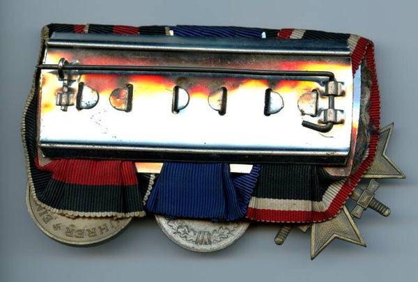 3 Piece Medal Bar (War Merit Cross 2nd Class with Swords/4 Years Long Luftwaffe Service/Czech Annexation)