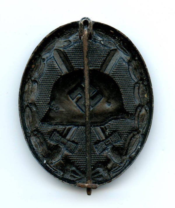 Nice black wound badge by Artur Jökel & Co., Gablonz an der Neiße. Steel construction with integral set up. The badge still holds most of its original black finish. The badge is marked in the helmet with "58" indicating production by Artur Jökel & Co.. Very nice rare badge in great condition. No repairs, no damage!
