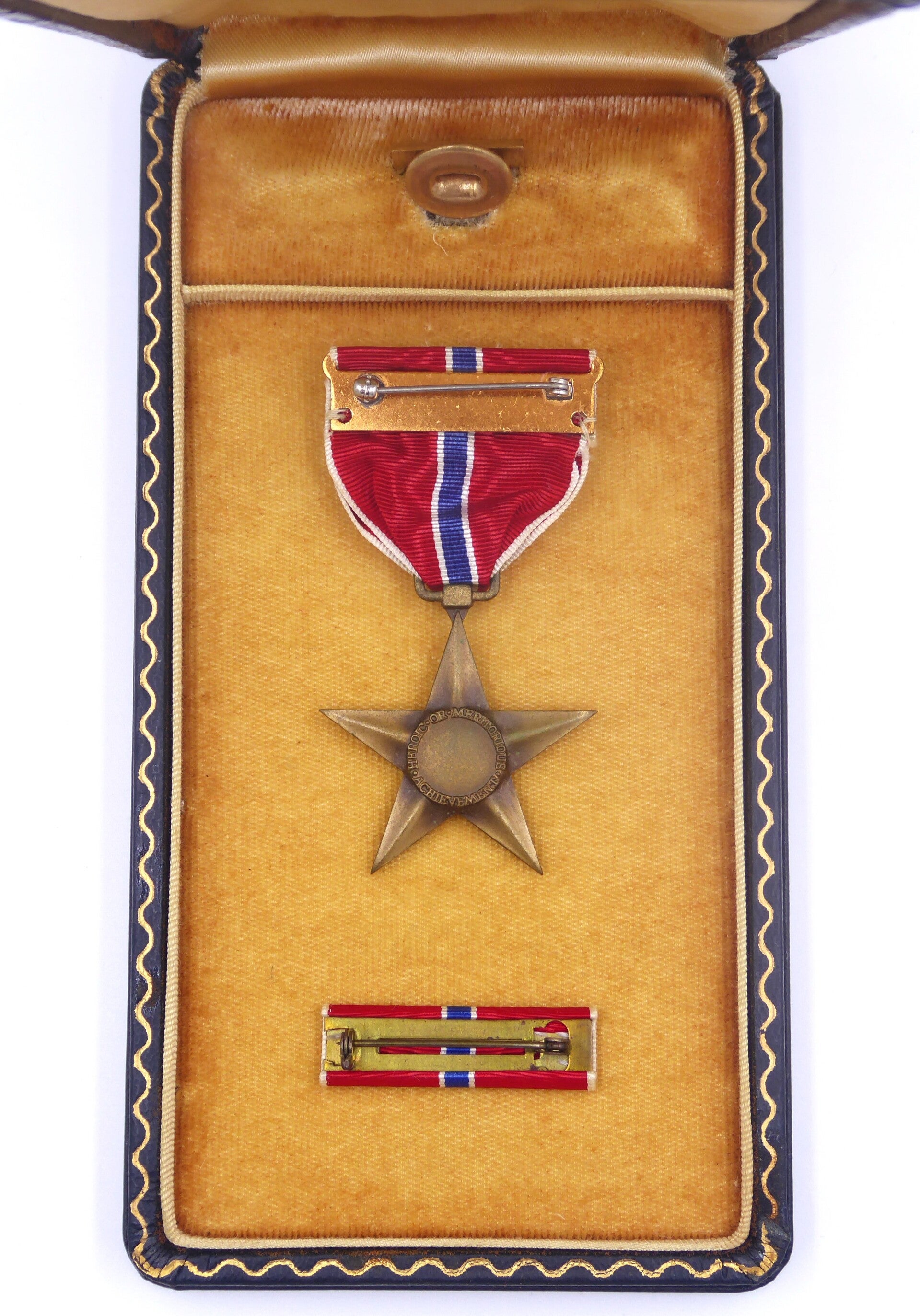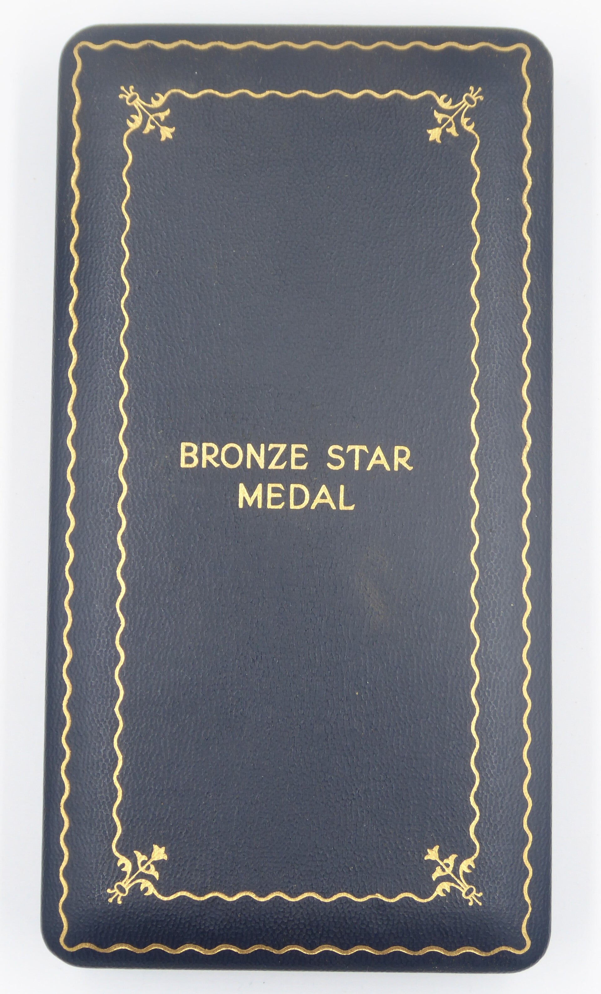 An original complete WW2 cased Bronze Star medal. The medal comes in its original case of issue together with its ribbon bar and lapel pin. The medal comes with a slot brooch mechanism and its original ribbon, indicating production during WW2. Great set in great condition! No repairs, no damage.