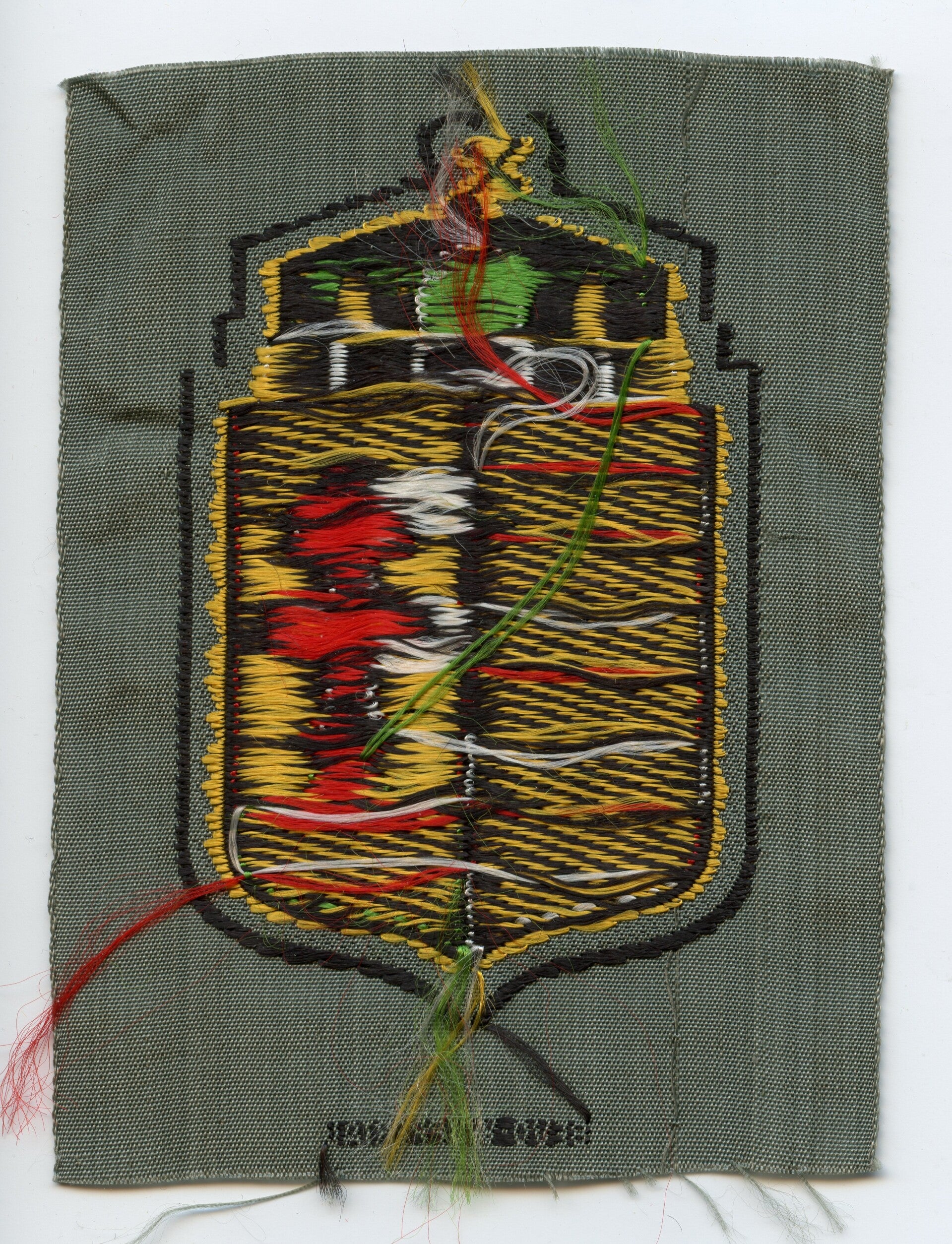 Very nice BeVo woven "Hungarian" Volunteer Shield. The shield was worn by Hungarian nationals whom served within the Wehrmacht. The shield remains in a mint and unissued condition. TOP PIECE! No repairs, no damage.