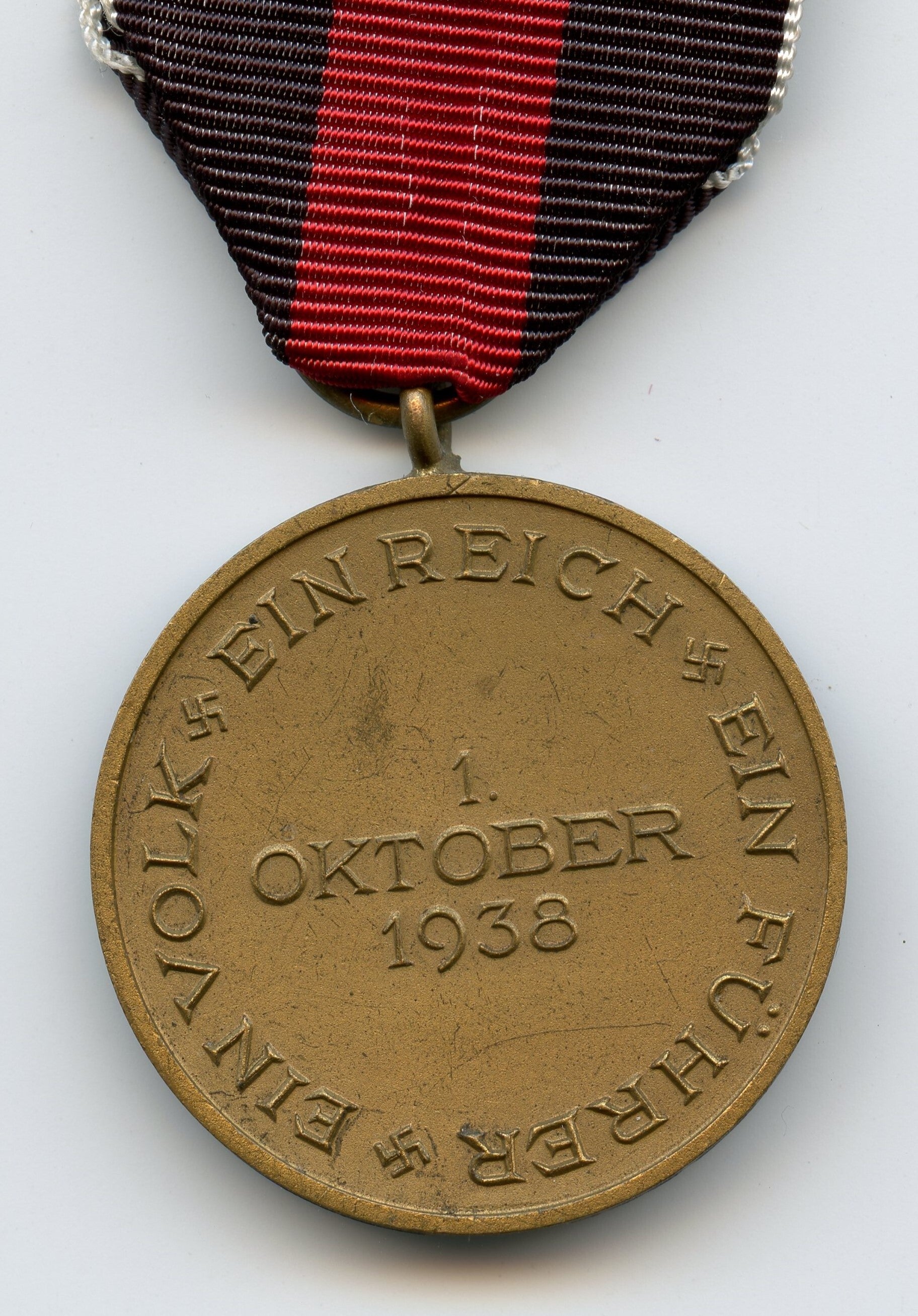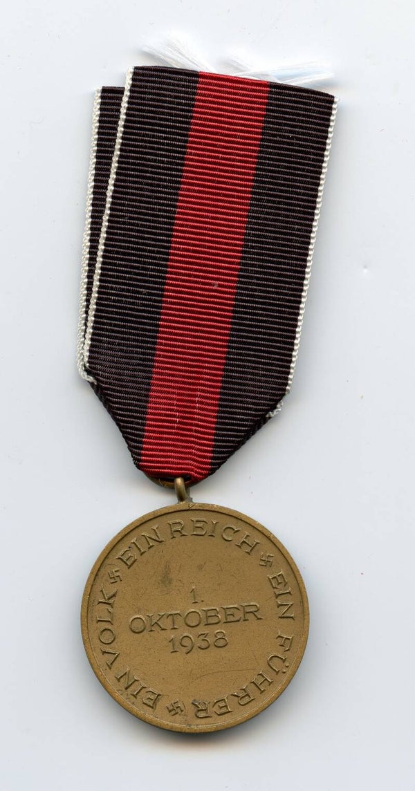 Nice 1 October 1938 medal for the annexation of Sudetenland. Buntmetall construction. Medal comes with its piece of ribbon. Nice medal in near mint condition. No repairs, no damage.
