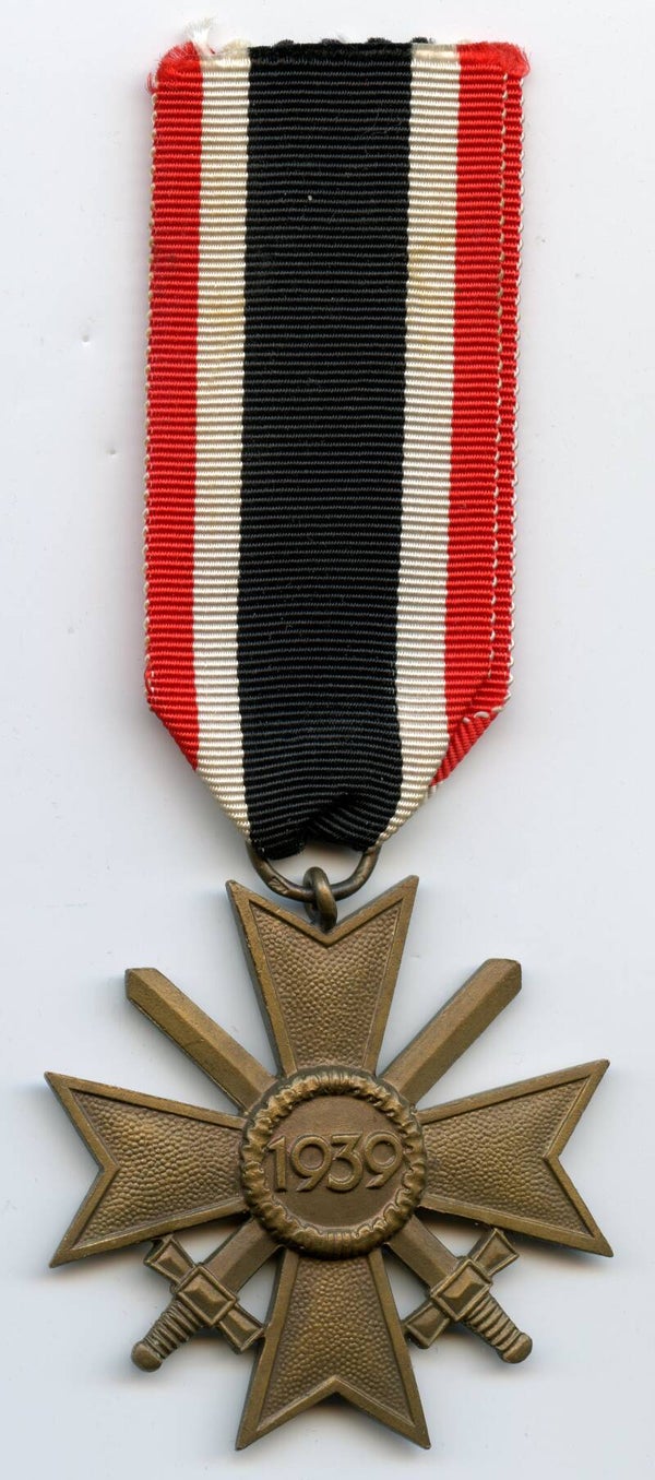 Nice KVK 2nd Class with Swords produced by Franz Lipp, Pforzheim. Tombac construction. The cross is marked on the ring with "72" indicating production by Lipp. Nice cross in excellent condition, comes with its original ribbon. Great cross! No repairs, no damage.