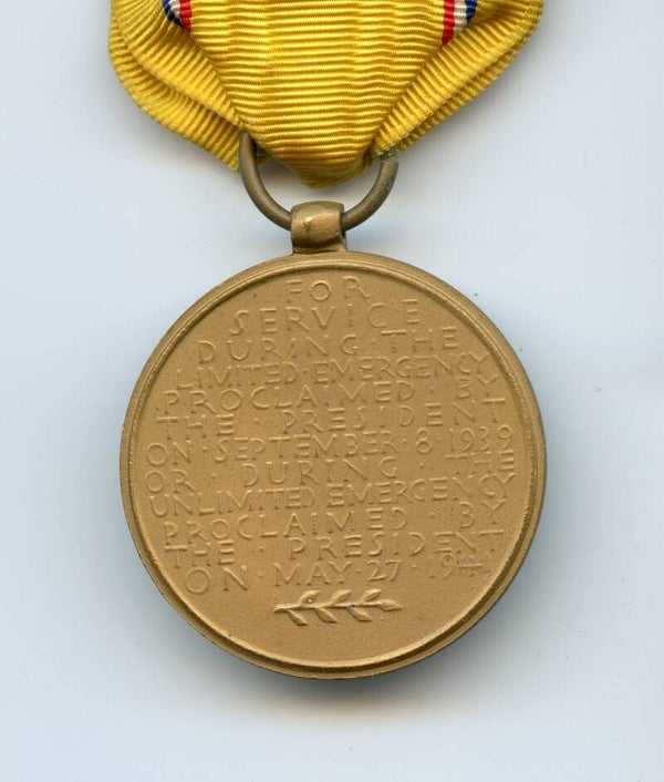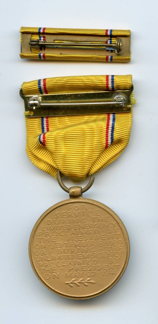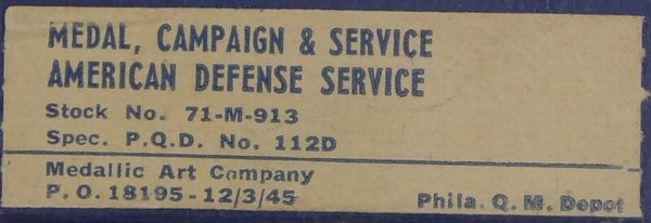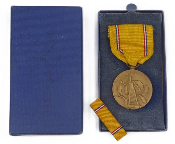 WW2 original Cased American Defense Medal. The medal comes together with ribbon bar in its original blue box of issue, which has some wear to it. The medal has a slot brooch mechanism and remains in an excellent near mint condition. Nice set! No repairs, no damage.
