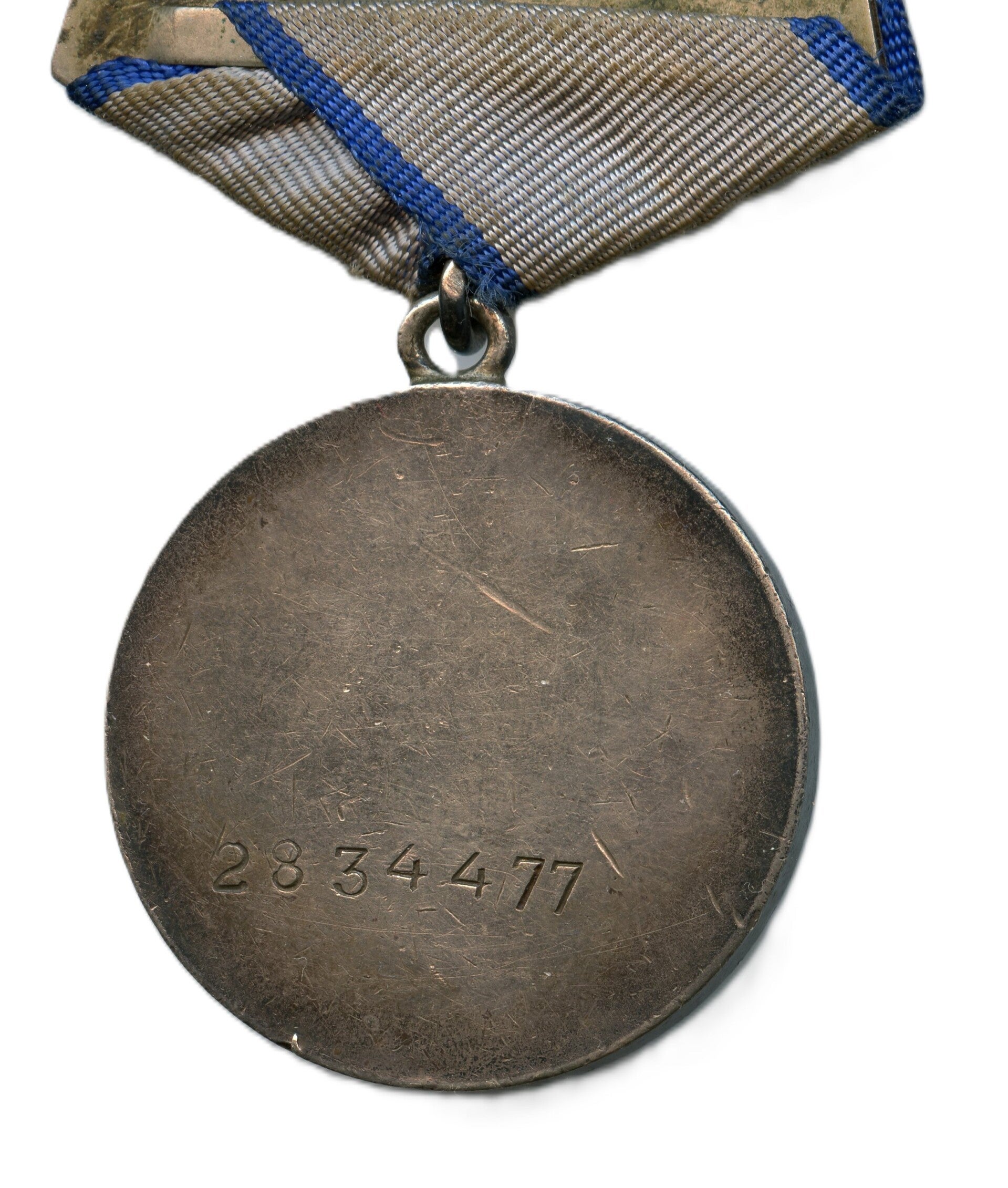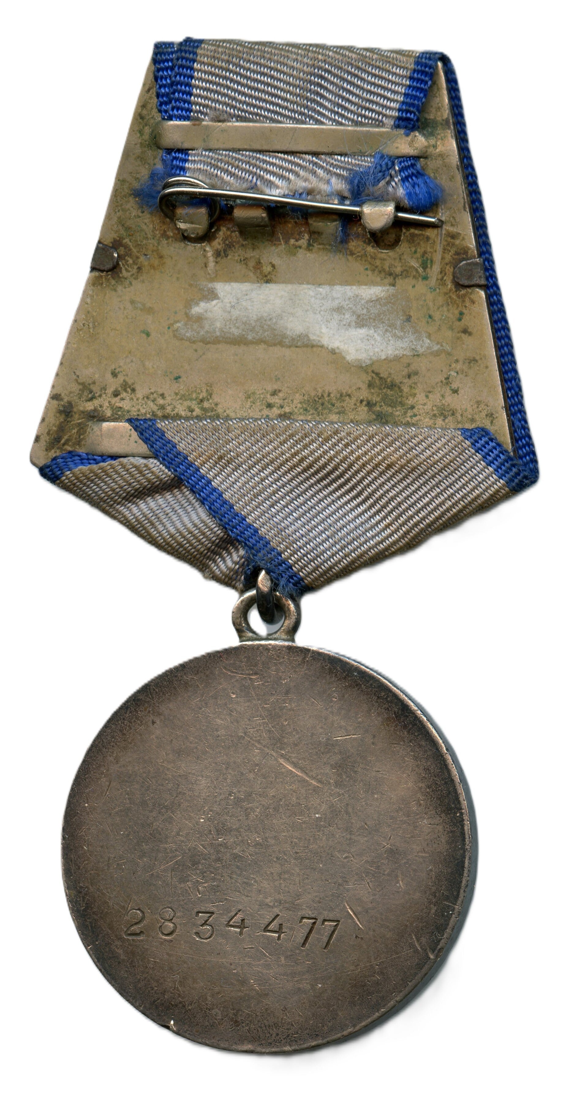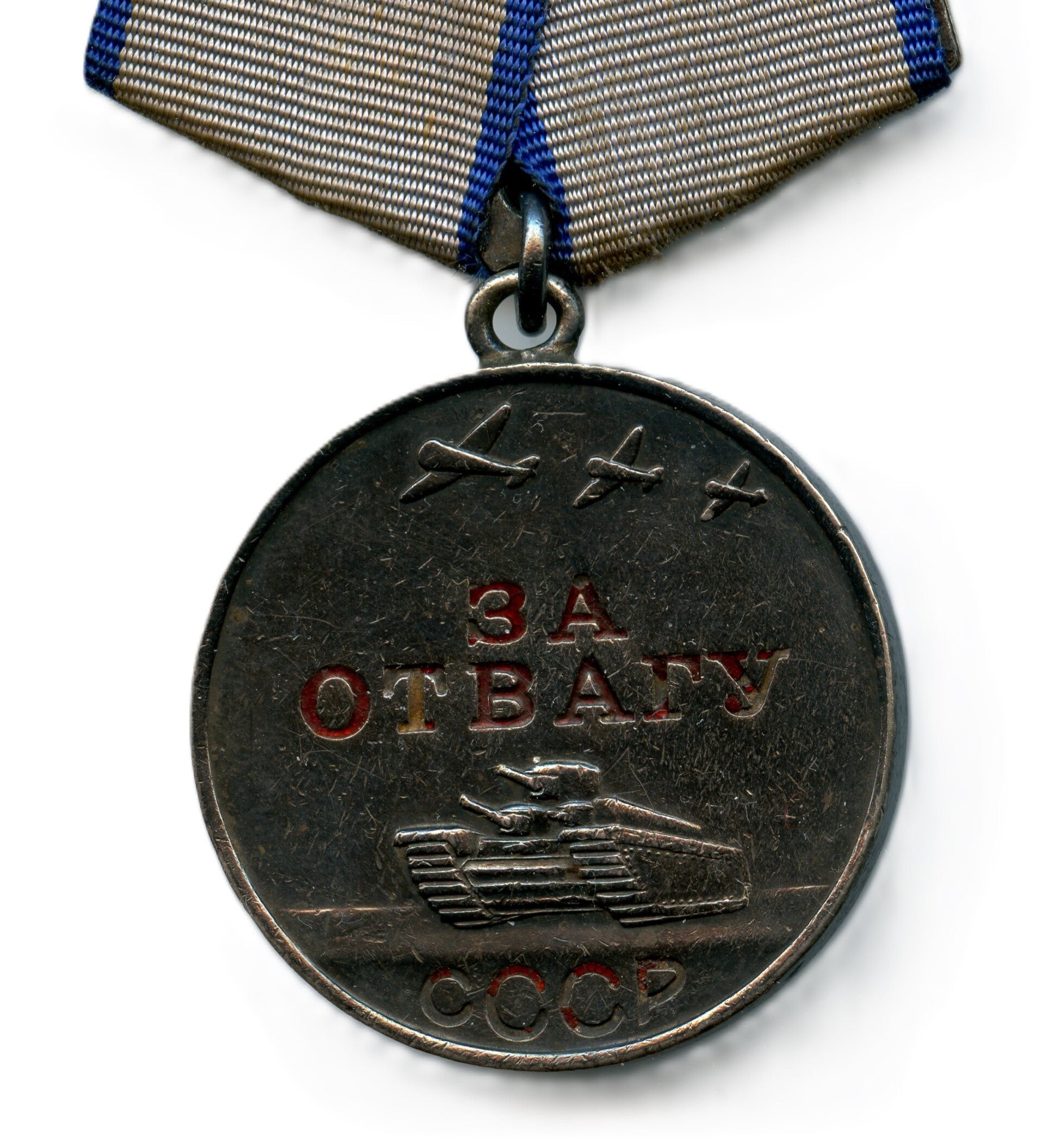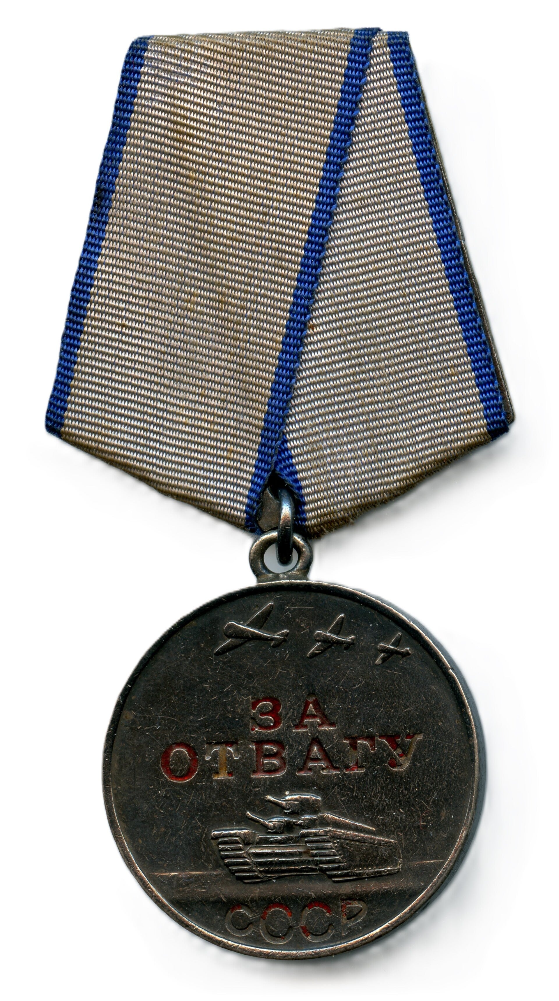 The medal of courage has been awarded on the 9th of June 1945 to Red Army Soldier Vladimir Vasiljevitsj Polentsov machine gunner on the 1st machine gun company of the 830th Infantery Regiment, 238th Infantery Division, 70th Infantery Corps, 49th Army, 2nd Belorussian Front. He was awarded the medal of courage for actions between 19th and 26th of april 1945 during the crossing of the Oder near the city of Schwedt. Under enemy fire hecontinuously delivered cartridges and grenades to the machine gun sections and carried out the section commander's orders in a bold manner.