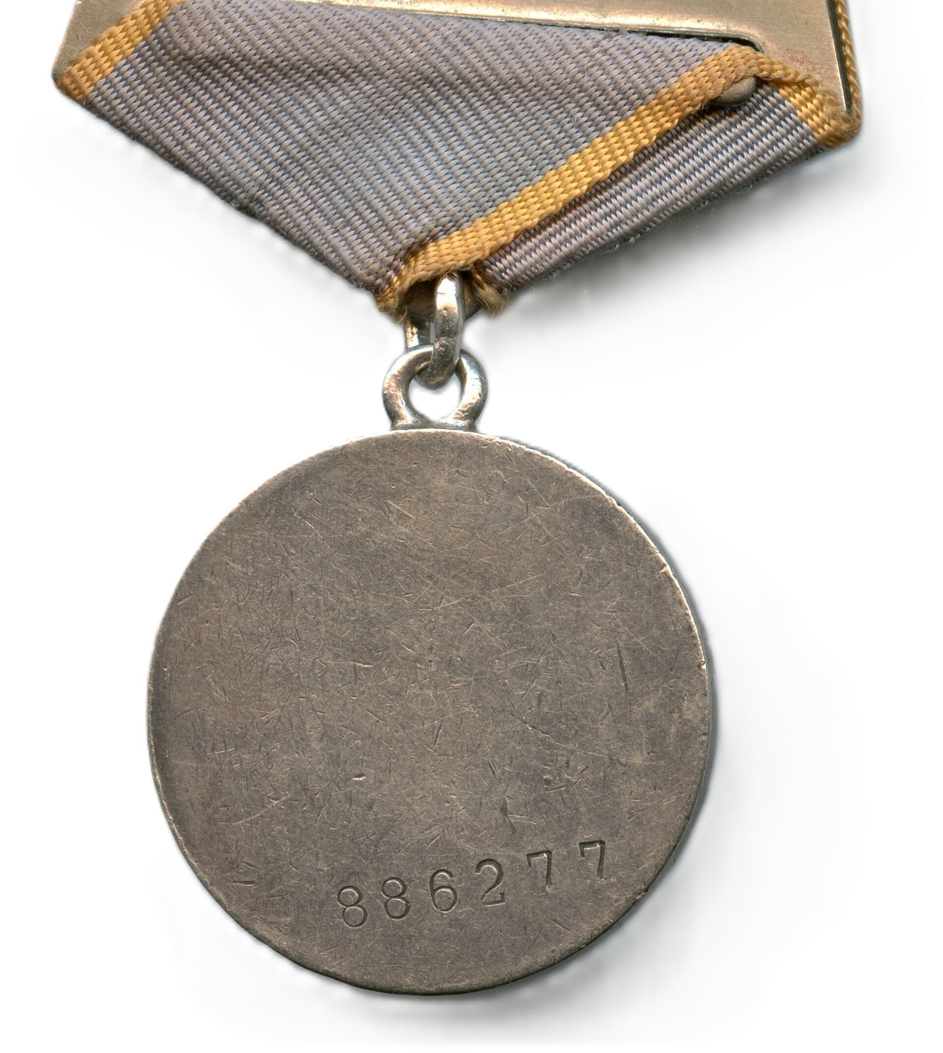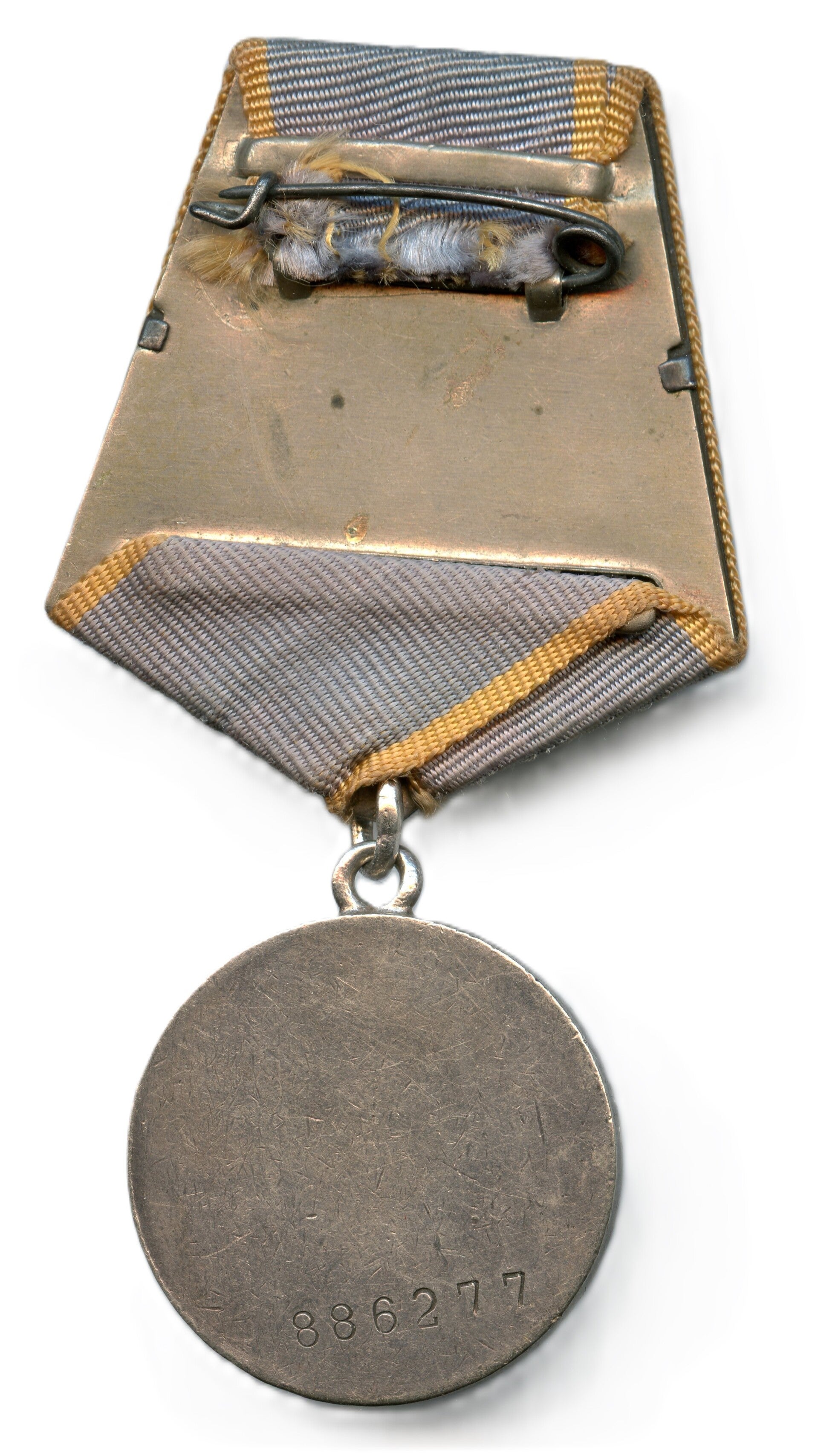 The medal for Combat Merit was awarded on 12 February 1944 to Guard Sergeant Major Anatoly Pavlovitch Murashkin, chief of an RSB radio set in the 7th Independent Guards Communications Company attached to the 6th Guards Fighter Division of the 8th Air Army. The RSB was installed in bombers as well as on the ground. Murashkin used the latter. Murashkin entered military service in 1941 and, according to the nomination, developed into a skilled