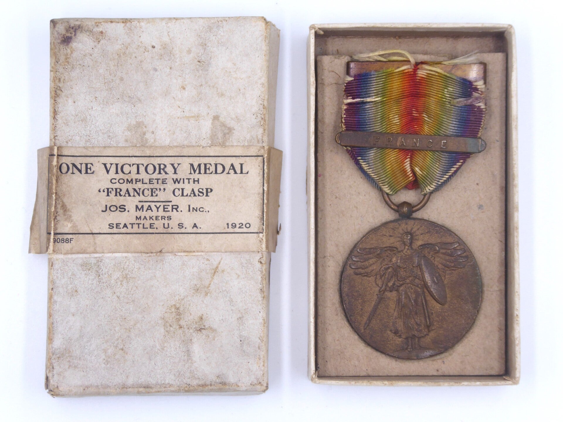 WW1 Cased Victory Medal with "France" Bar (Jos. Mayer. Inc. 1920)