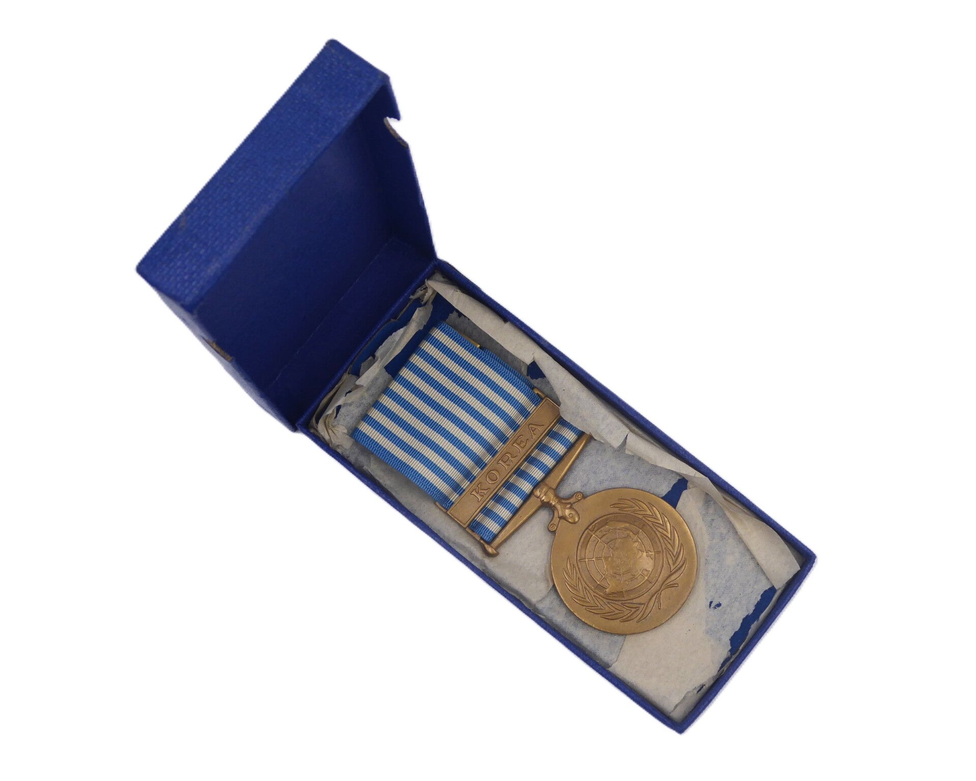 Nice Post WW2 Cased United Nations Service Medal for Korea. The medal comes in its original blue box of issue and remain in near mint condition. The medal comes with a period original crimp brooch mechanism. Great looking set! No repairs, no damage.