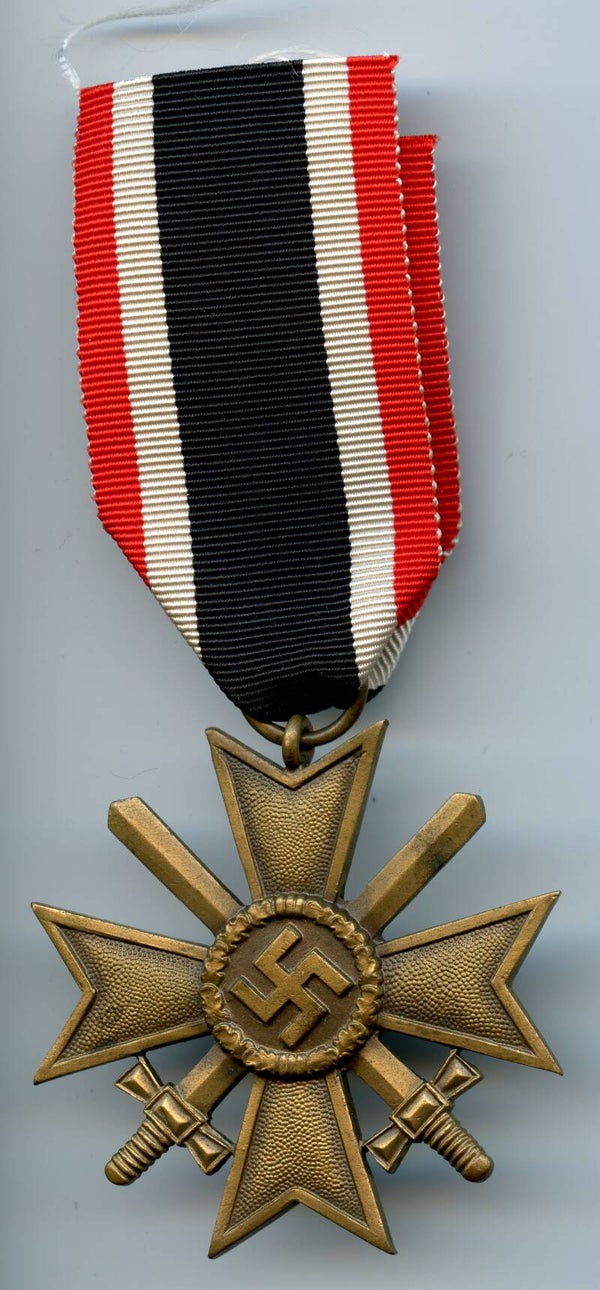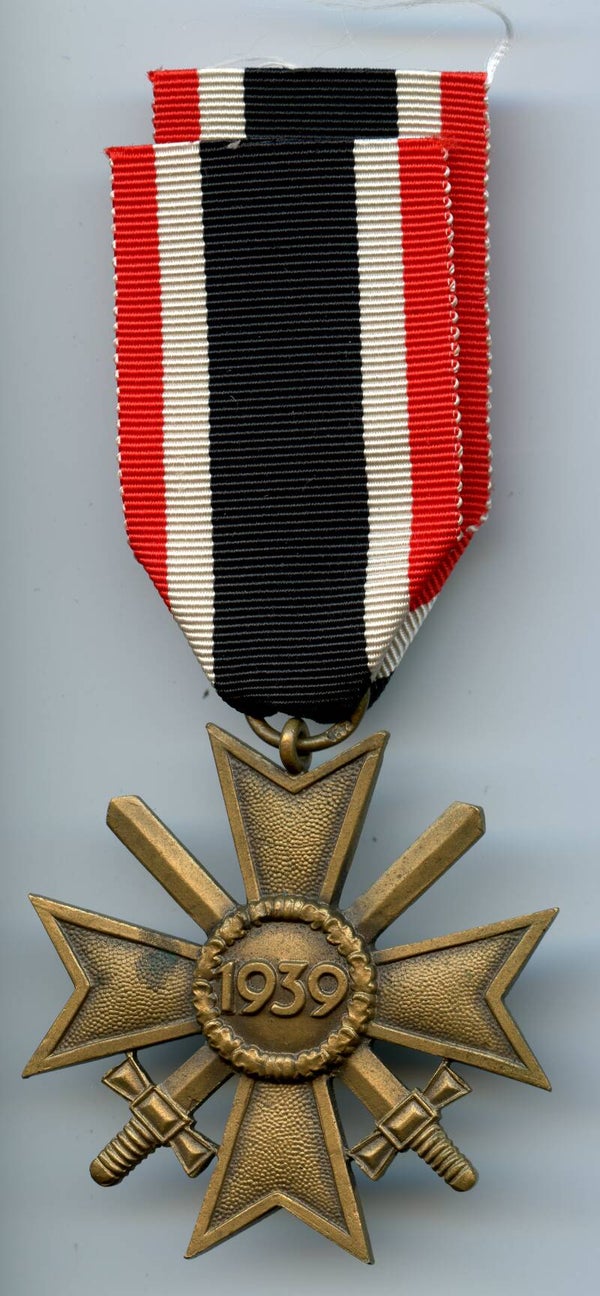 Nice KVK 2nd Class with Swords produced by R. Kreisel, Gablonz an der Neiße. Tombac construction. The cross is marked on the ring with "67" indicating production by Kreisel. Nice cross in excellent condition, comes with its original ribbon. Great cross! No repairs, no damage.