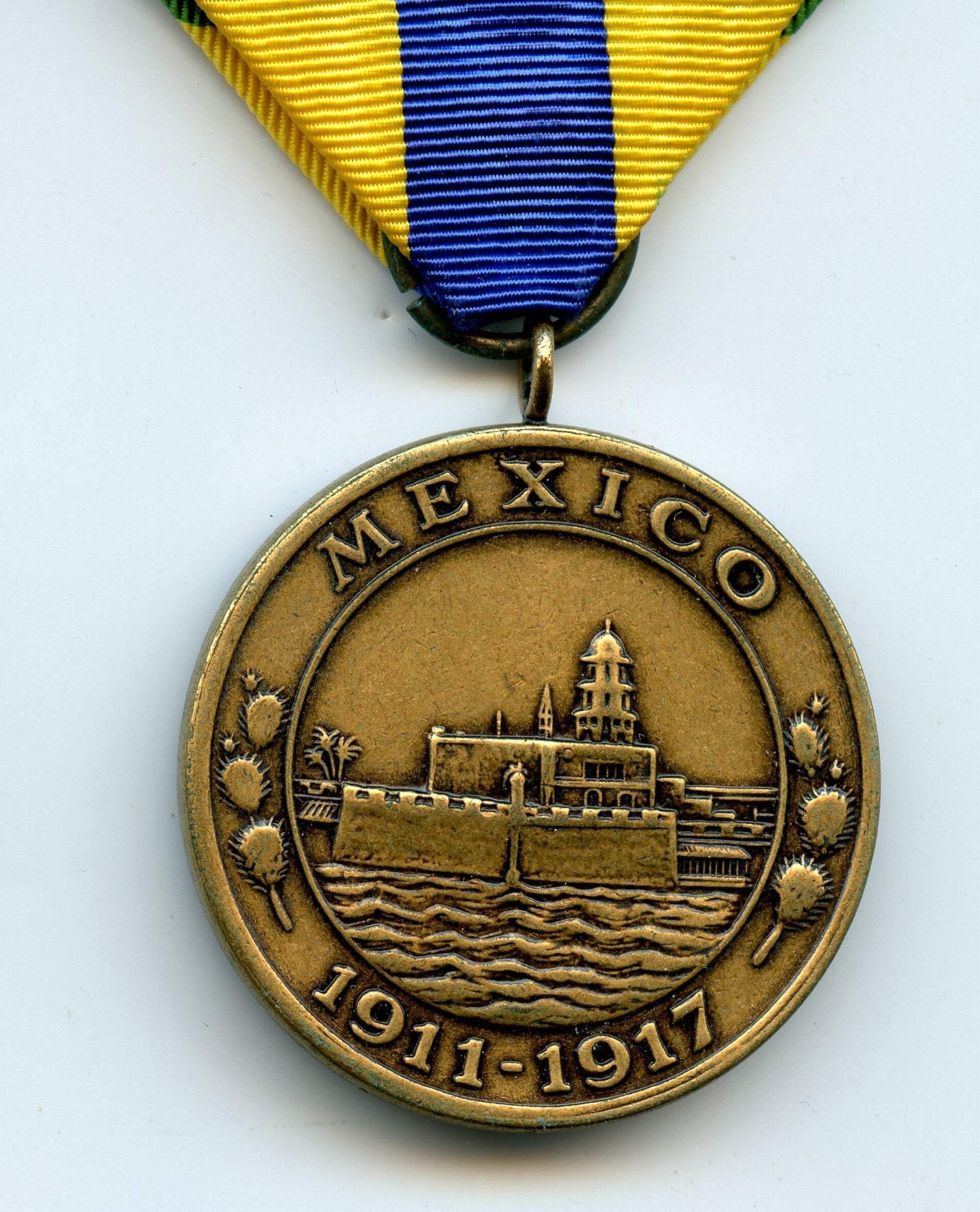 A nice original modern era USMC Mexican Service Medal. The medal comes with a crimp brooch, indicating post WW2 production. Very nice USMC Mexican Service Medal in near mint condition! No repairs, no damage.