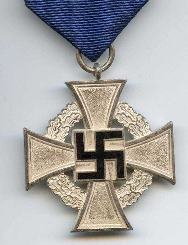 Very nice 25 Years Faithful Service Medal. The medal remains in a good worn condition with its original ribbon and pinsystem still functional. Good looking medal in nice worn condition! No repairs, no damage.