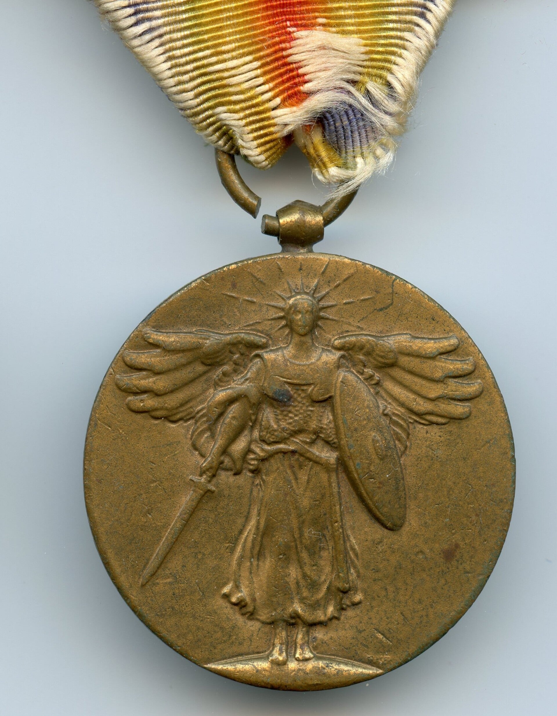 WW1 Victory Medal with "Aisne/Aisne-Marne/St. Mihiel/Meuse-Argonne/Defensive Sector" Bars