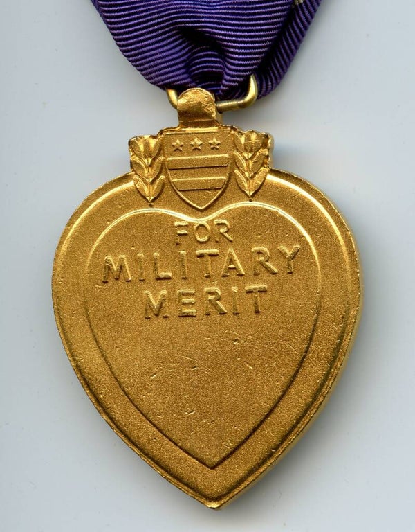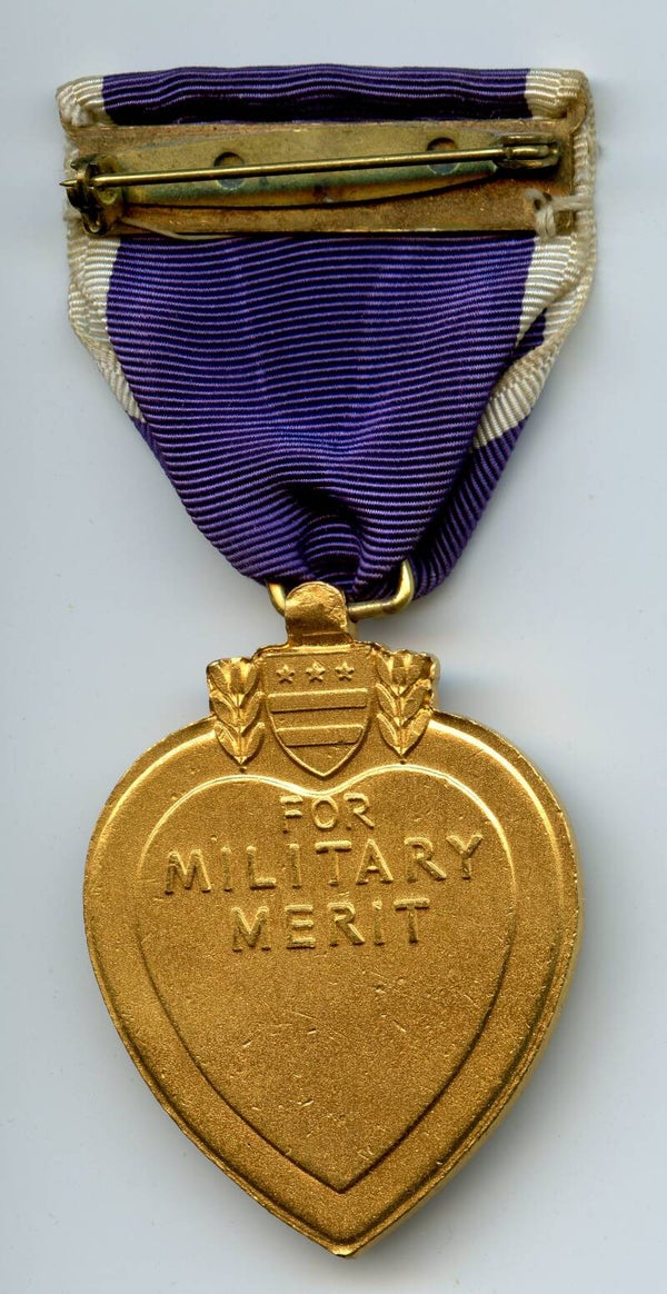WW2 Original Purple Heart medal. The medal comes with its period original slot brooch mechanism and ribbon. Great medal in a good worn condition. No repairs, no damage.