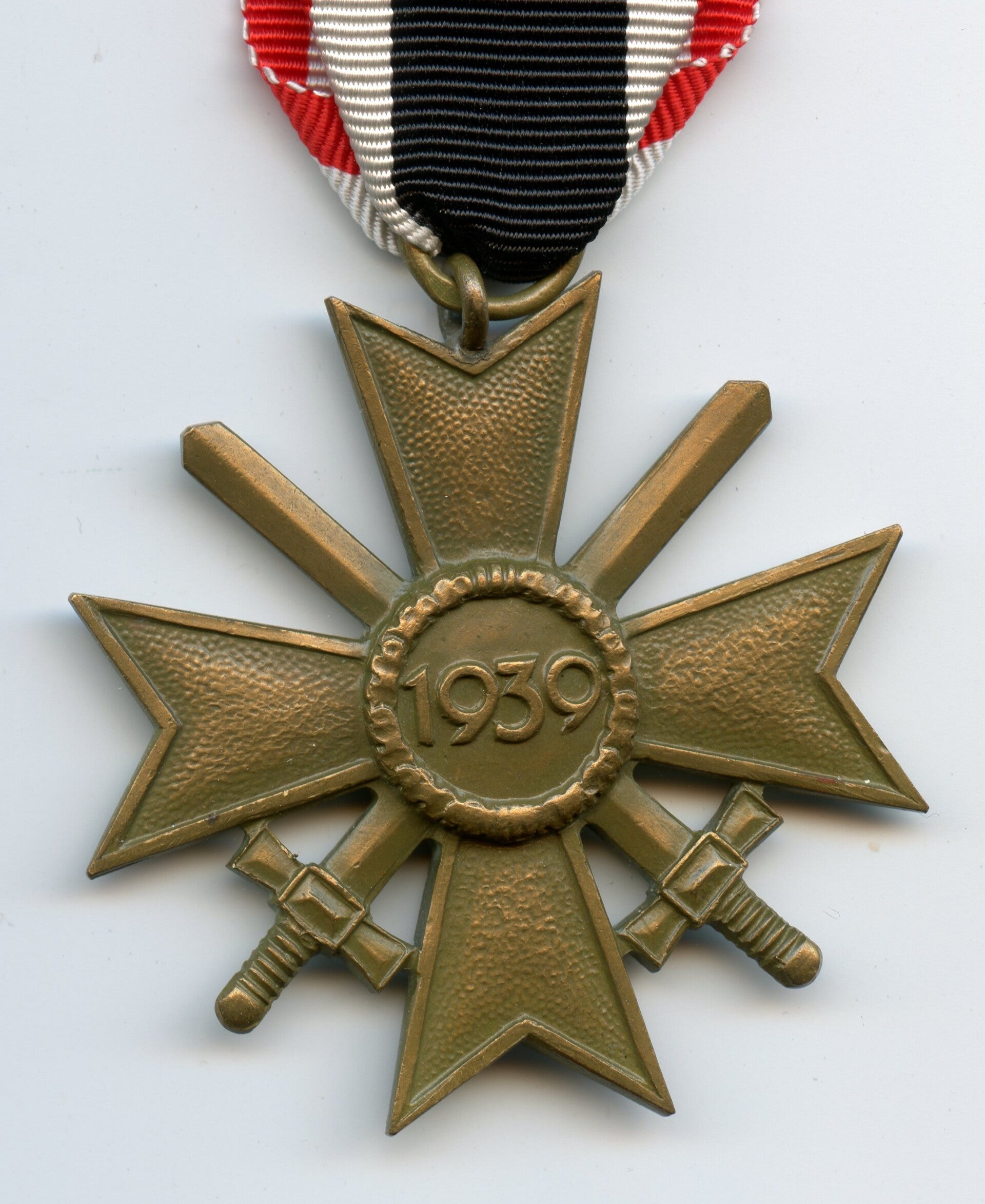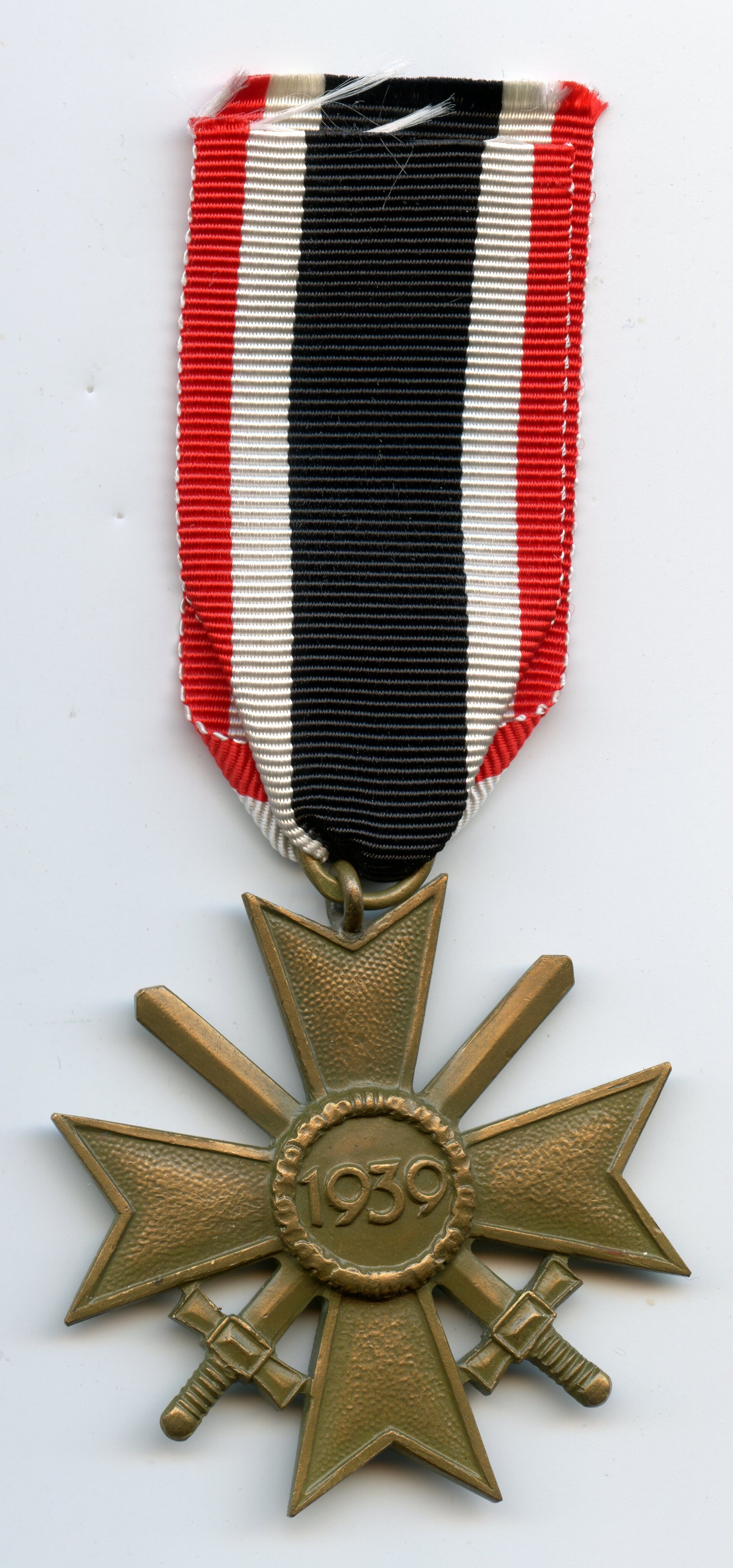 Nice KVK 2nd Class with Swords produced by Hans Gnad, Wien. Tombac construction. The cross is marked on the ring with "31" indicating production by Gnad. Nice cross in excellent condition, comes with its original ribbon. Great cross! No repairs, no damage.