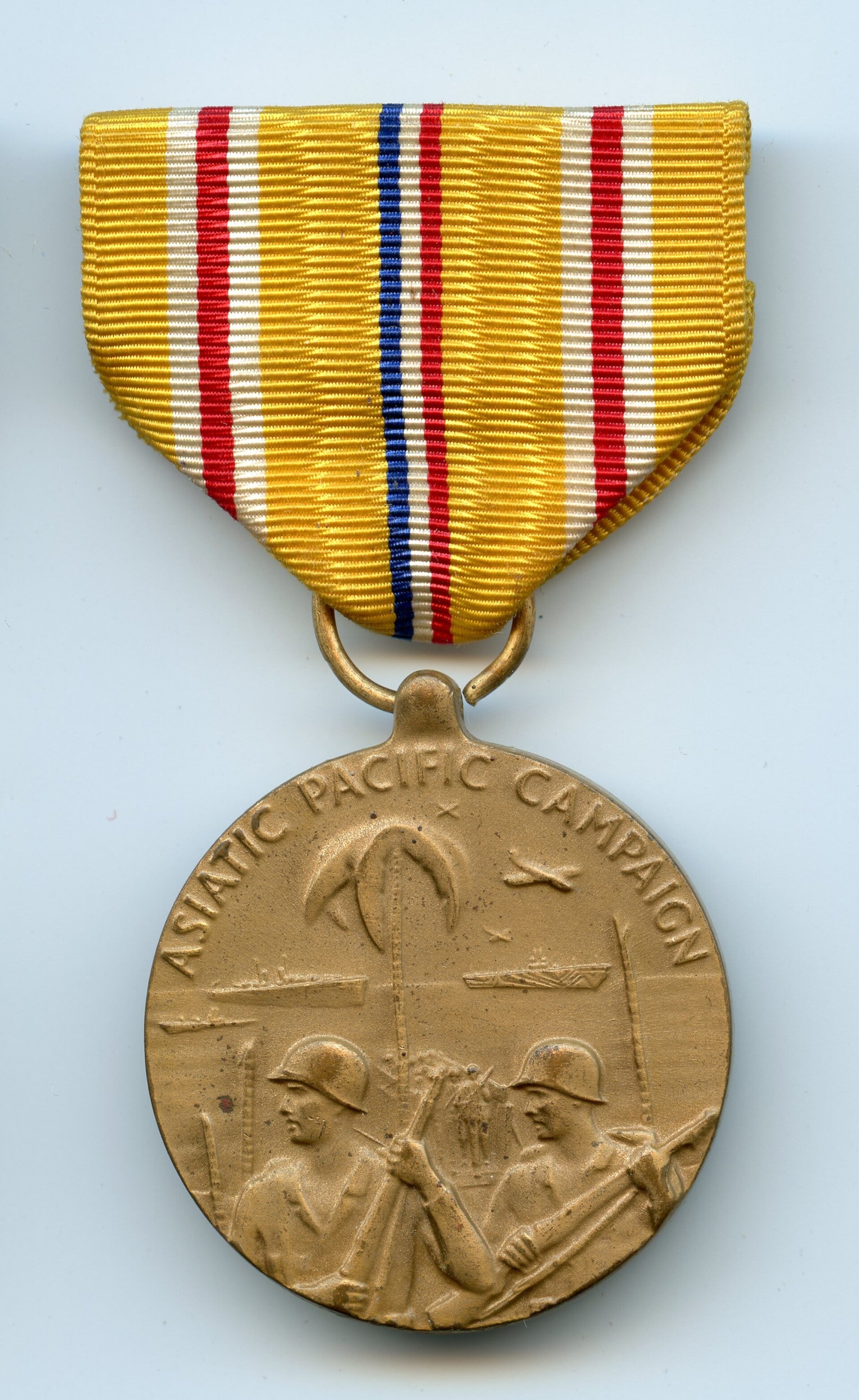 Nice WW2 original Asiatic Pacific campaign medal. The medal comes with its period original crimp brooch. The medal remains in a very nice light worn condition. Nice medal! No repairs, no damage.