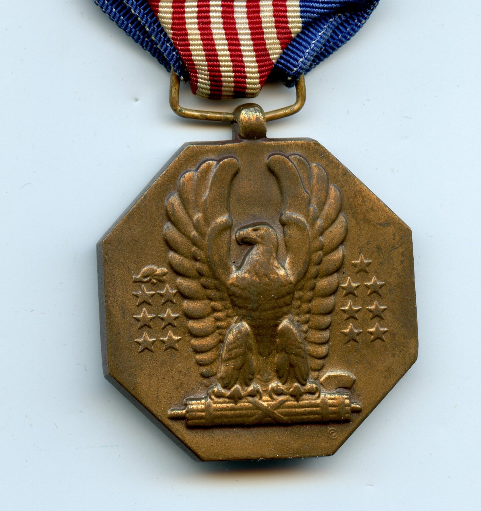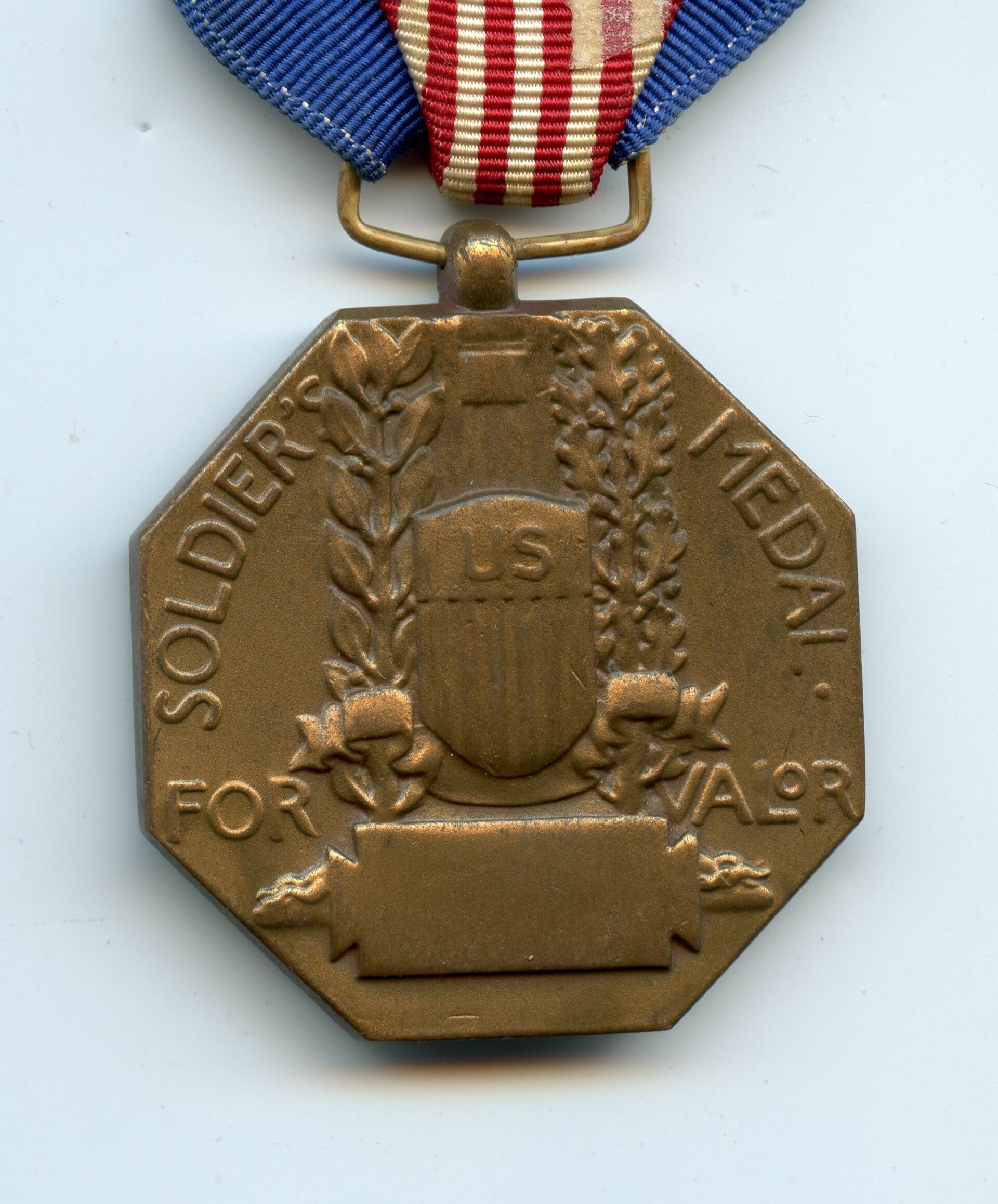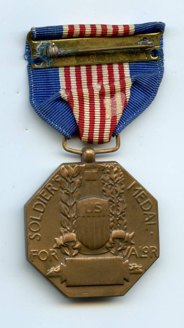 Nice original WW2 Soldiers Medal. The soldiers medal has the slot brooch mechanism, indicating World War Two production, and remains in a great condition. Great medal! No repairs, no damage.