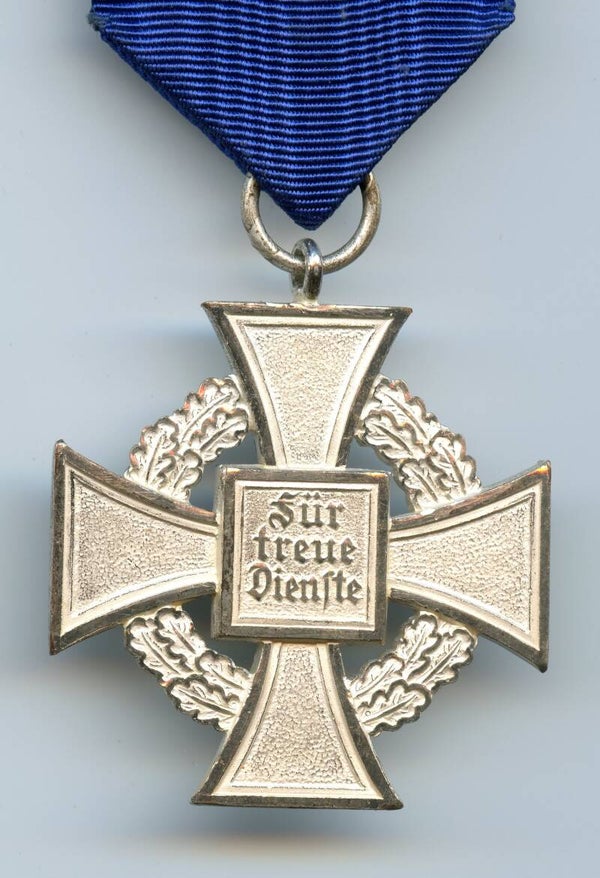 Very nice 25 Years Faithful Service Medal. The medal remains in an excellent condition with its original ribbon and pinsystem still functional. Good looking medal in excellent condition! No repairs, no damage.