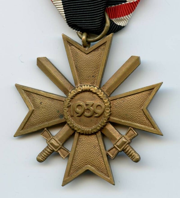 KVK 2nd Class with Swords, unmarked. Buntmetall construction. Nice cross in near mint condition, comes with its original long ribbon. Top cross! No repairs, no damage.