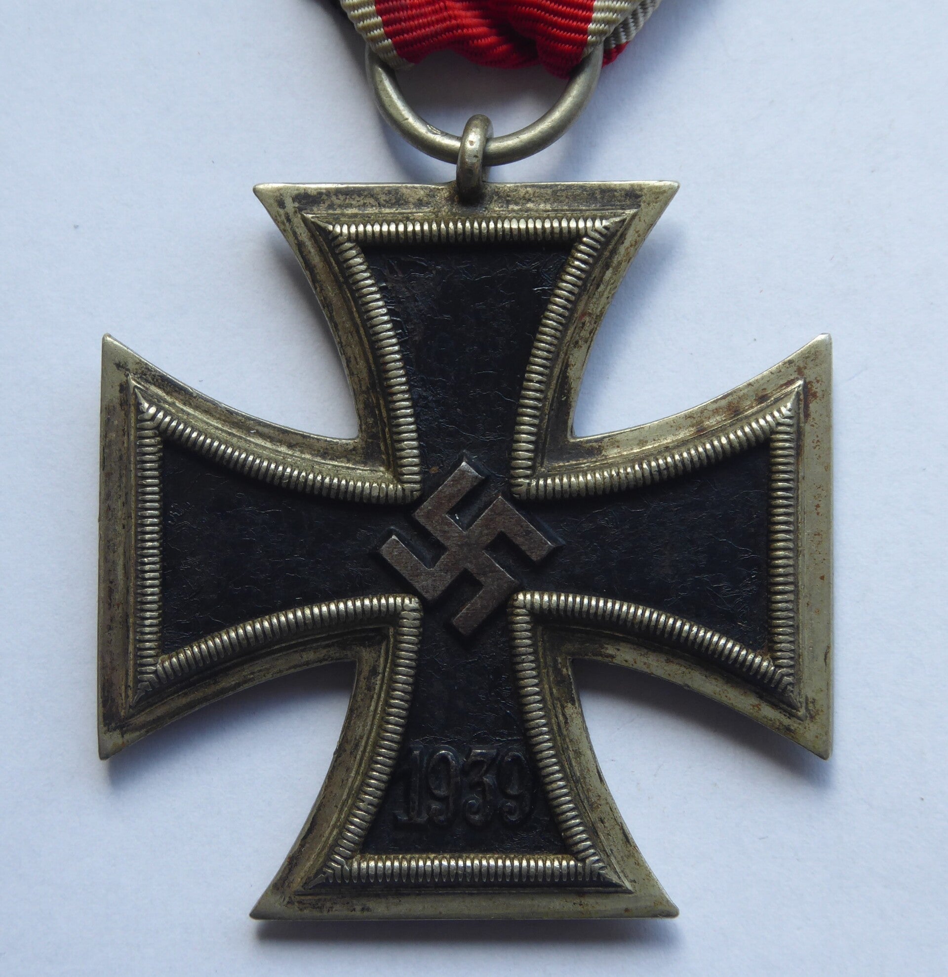 Beautiful Iron Cross 2nd class produced by Paul Meybauer, Berlin. The cross is marked on the ring with "L/13" which indicates production by Meybauer. The cross comes with its original ribbon and remains in an excellent condition. The cross comes together with its original ribbon bar and buttonhole batton. Beautiful cross! No repairs, no damage.