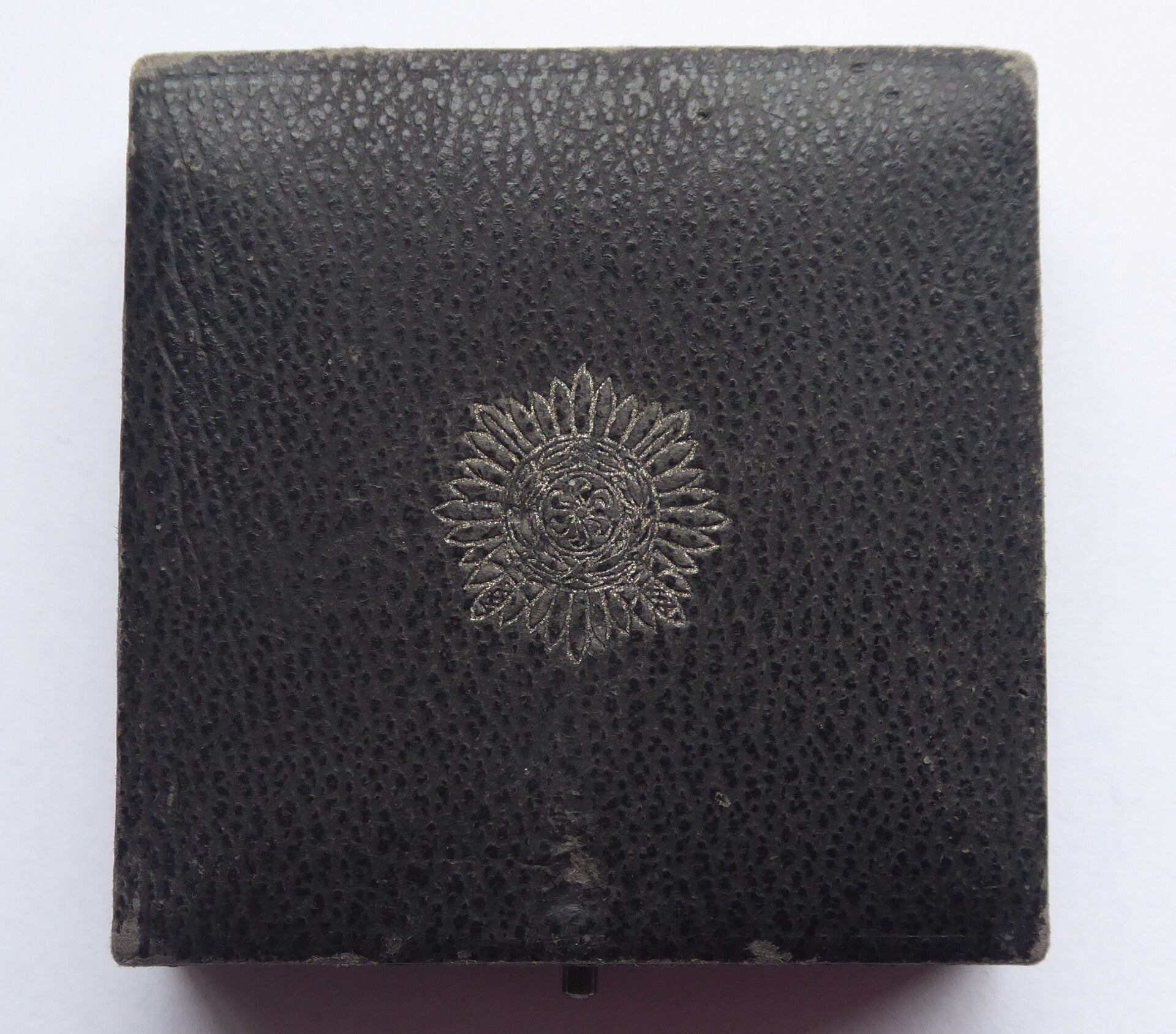 Very nice cased 1st class Ostvolk decoration for bravery in gold. Zinc construction. The badge is unmarked but has the typical Wächtler & Lange design. Nice badge with still a nice amount of original gold finish still left. Badge comes in its original case of issue which also remains in an excellent condition. Nice and very uncommon set which gets harder and harder to find! No repairs, no damage.