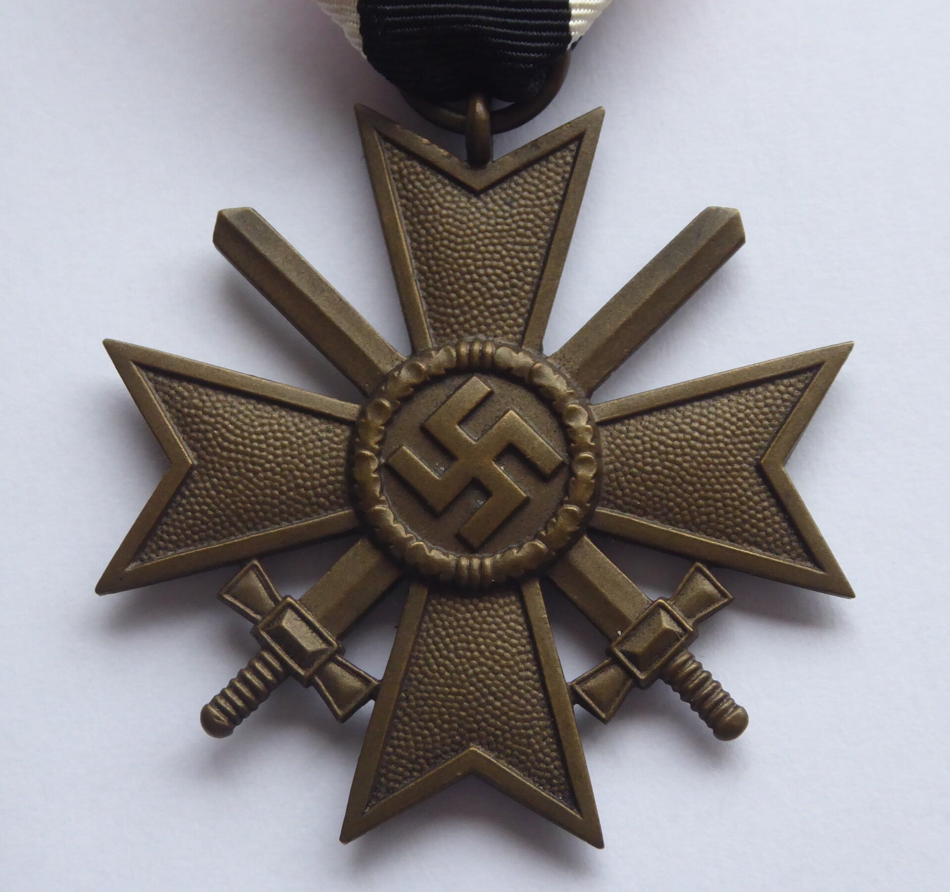 KVK 2nd Class with Swords, unmarked. Buntmetall construction. Nice cross in near mint condition, comes with its original long ribbon. Top cross! No repairs, no damage.