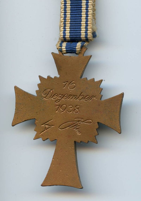 Nice original Bronze Mothers Cross. The cross is made of a tombac construction with all of its enamel intact. The cross comes together with its original MINT ribbon. Nice cross in good condition! No repairs, no damage.
