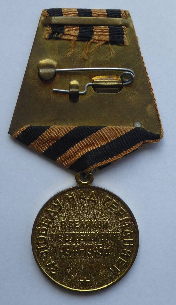 Very nice original Victory over Germany medal. The medal comes with its original singular brass suspension. The medal is of the first type and remains in a great condition! Nice Victory over Germany medal with no repairs, no damage.