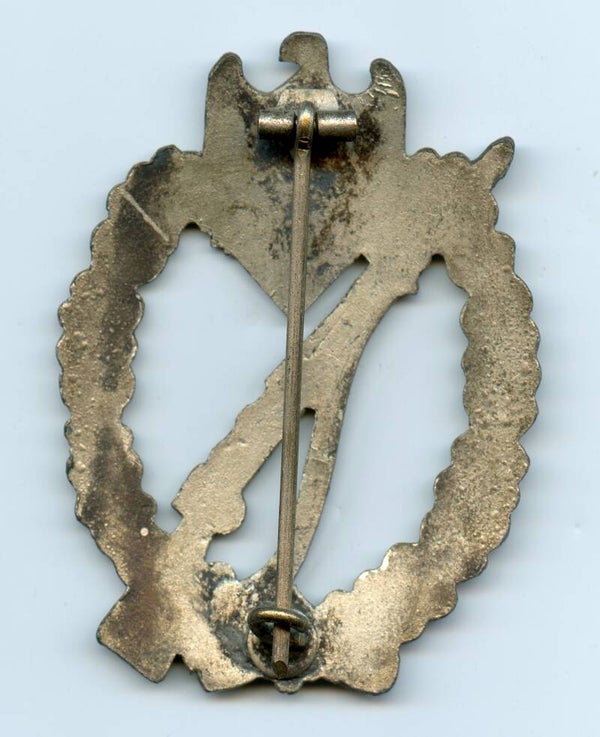 Nice silver infantry assault badge by C.E. Juncker, Berlin. Zinc construction with soldered on hardware. It is a copper coated variant giving it a beautiful patina. The badge is unmarked but is a typical mid to late war Juncker piece. Nice badge in great condition. No repairs, no damage.
