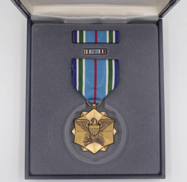 An original complete modern era cased Joint Service Achievement Medal. The medal comes in its original case of issue together with its ribbon bar and lapel pin. The medal comes with a period original crimp brooch mechanism. Great set in near mint condition! No repairs, no damage.
