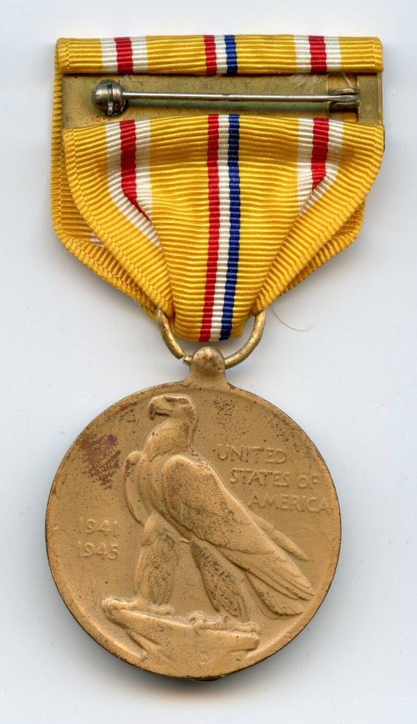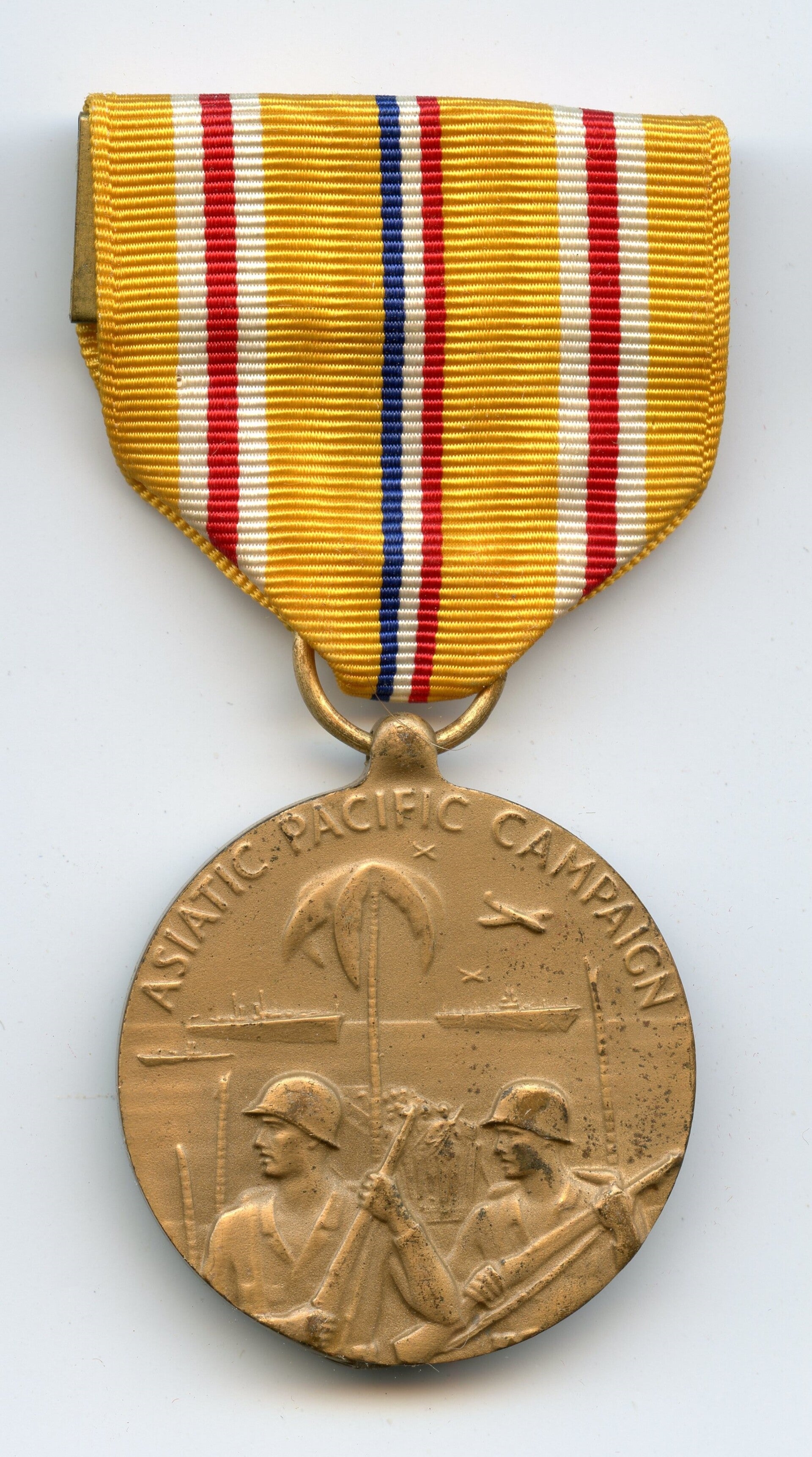 Nice WW2 original Asiatic Pacific campaign medal. The medal comes with its period original crimp brooch. The medal remains in a nice worn condition. Nice medal! No repairs, no damage.