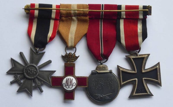 Very nice medal bar as intended for a member of the Spanish Blue Division. The medal bar has been mounted in the typical Spanish style. The medal bar consists of the following medals: