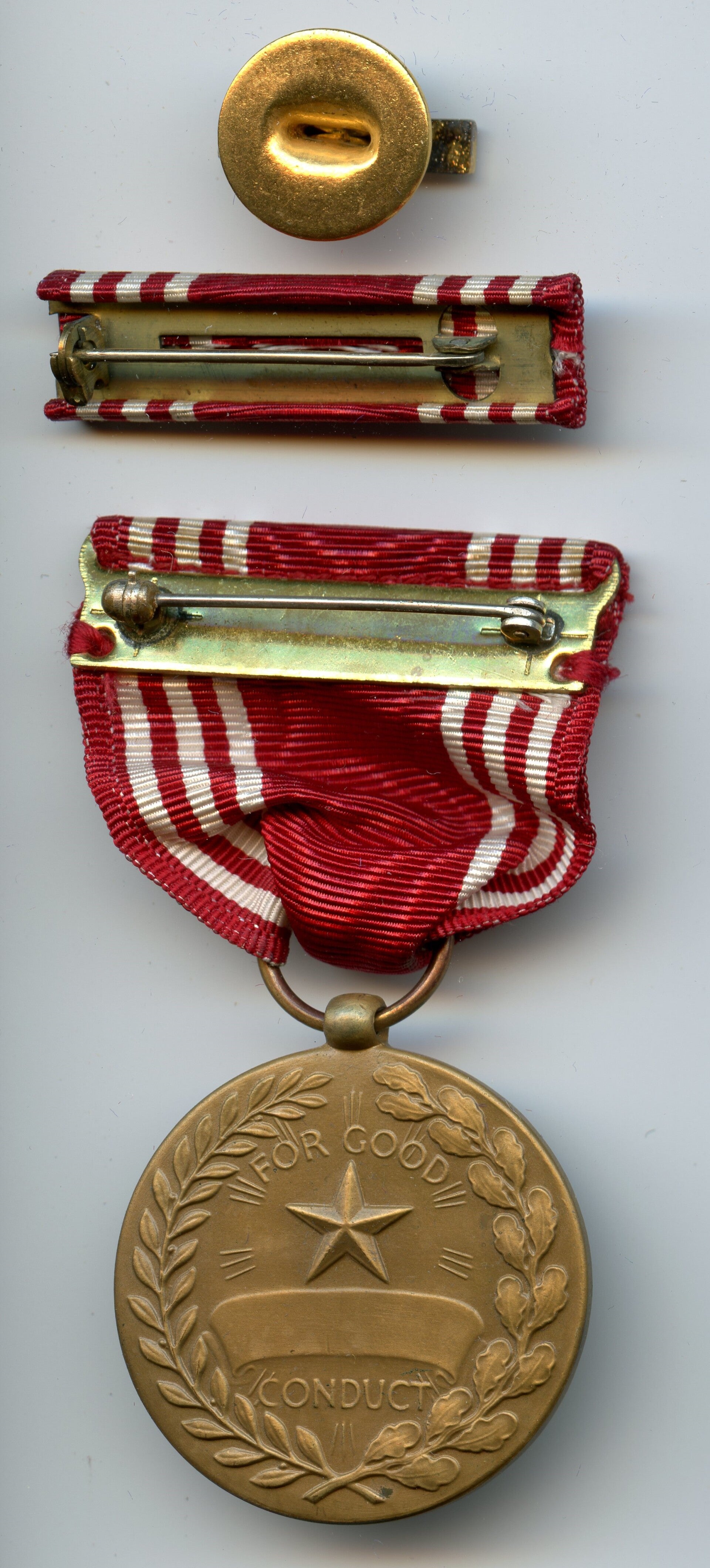 WW2 original Cased Good Conduct Medal. The set was produced in 1944 by the The Robbins Company. The medal comes in its original box of issue together with lapel pin and ribbon bar, which remain in good condition. The medal has a slot brooch mechanism and remains in an excellent near mint condition. Great Good Conduct set! No repairs, no damage.