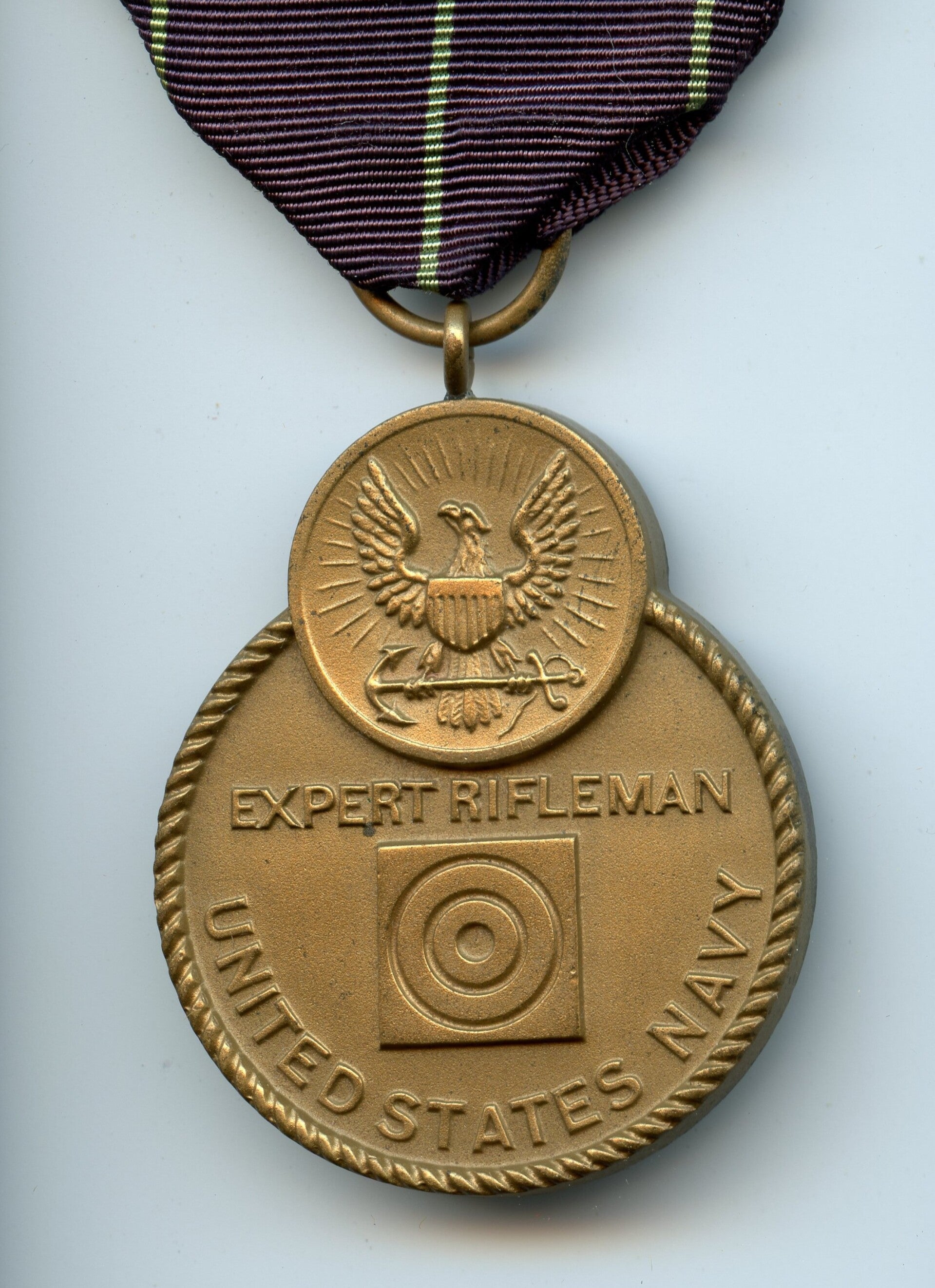 WW2 Original Navy Expert Rifleman medal. The medal comes with its period original slot brooch mechanism and ribbon. Great harder to find medal in excellent worn condition. No repairs, no damage.