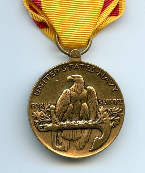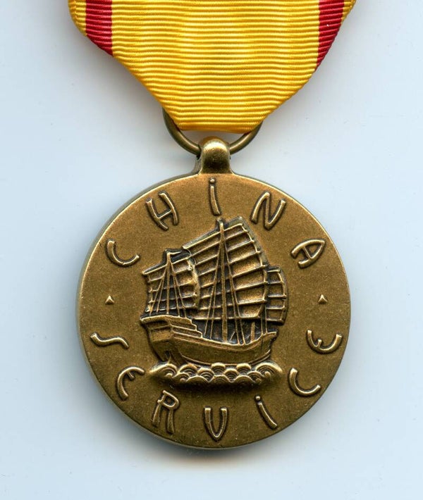 A nice original modern era restrike of the Navy China Service Medal. The medal comes with a crimp brooch, indicating post WW2 production. Very nice scarce Navy China Service Medal in excellent near mint condition! No repairs, no damage.