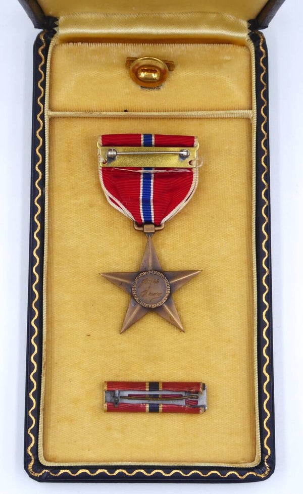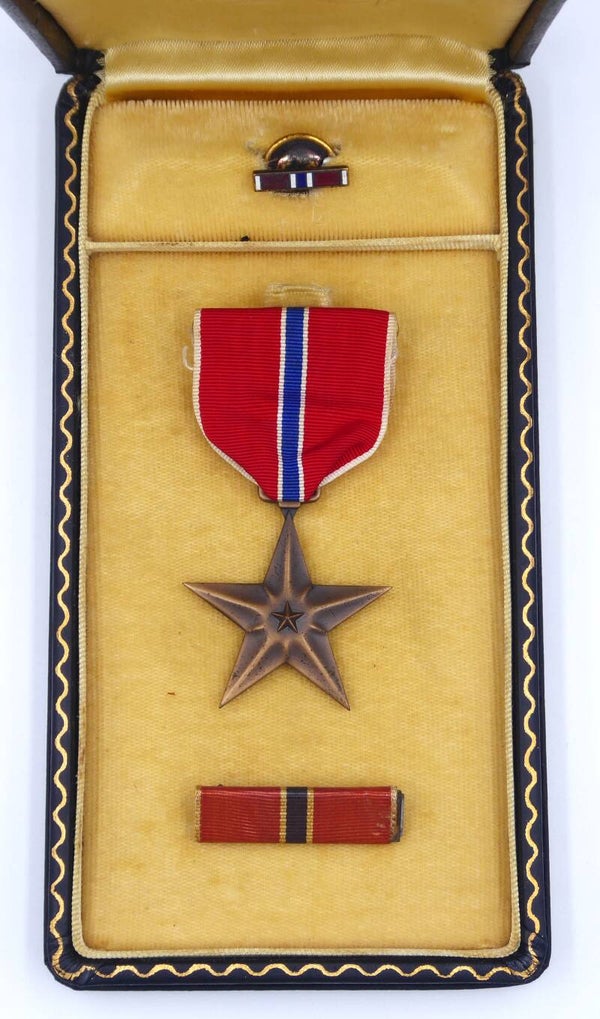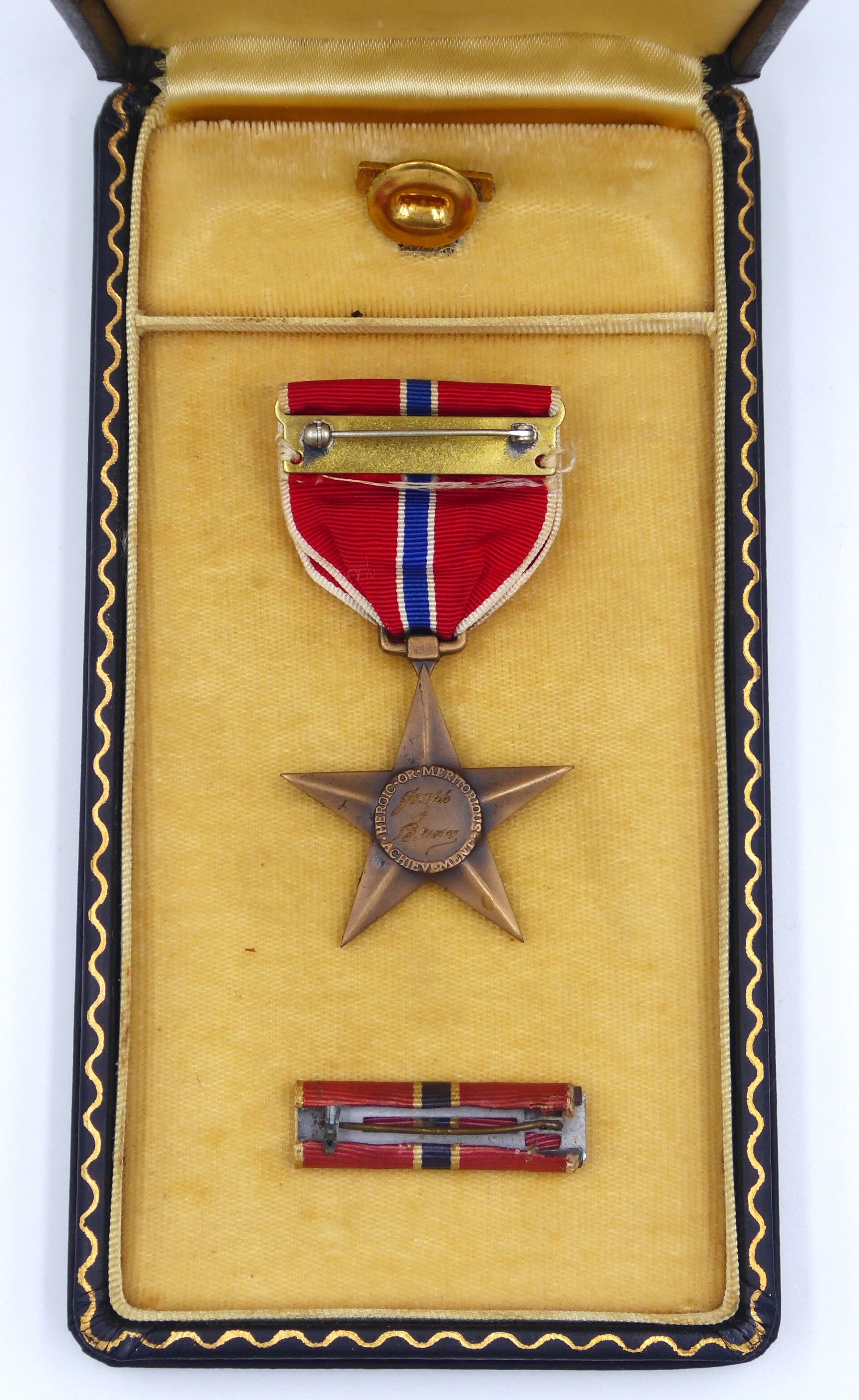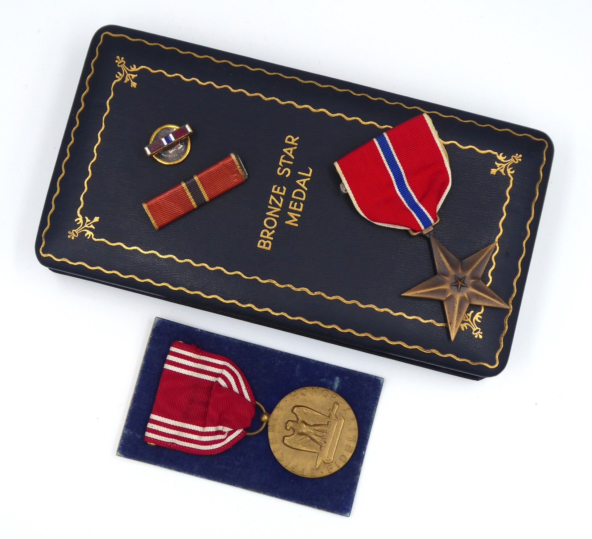 Excellent historically interesting WW2 Cased Named and Researched Bronze Star Medal Set. The set consists of the following items: