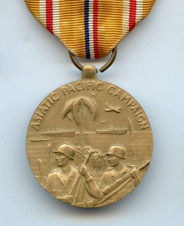 Nice WW2 original Asiatic Pacific campaign medal. The medal comes with its period original crimp brooch. The medal remains in a nice worn condition. Nice medal! No repairs, no damage.