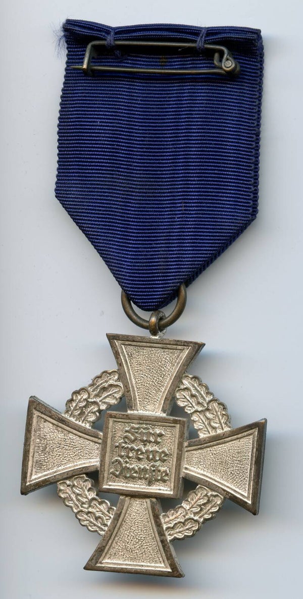 Very nice 25 Years Faithful Service Medal. The medal remains in an excellent condition with its original ribbon and pinsystem still functional. Good looking medal in excellent condition! No repairs, no damage.