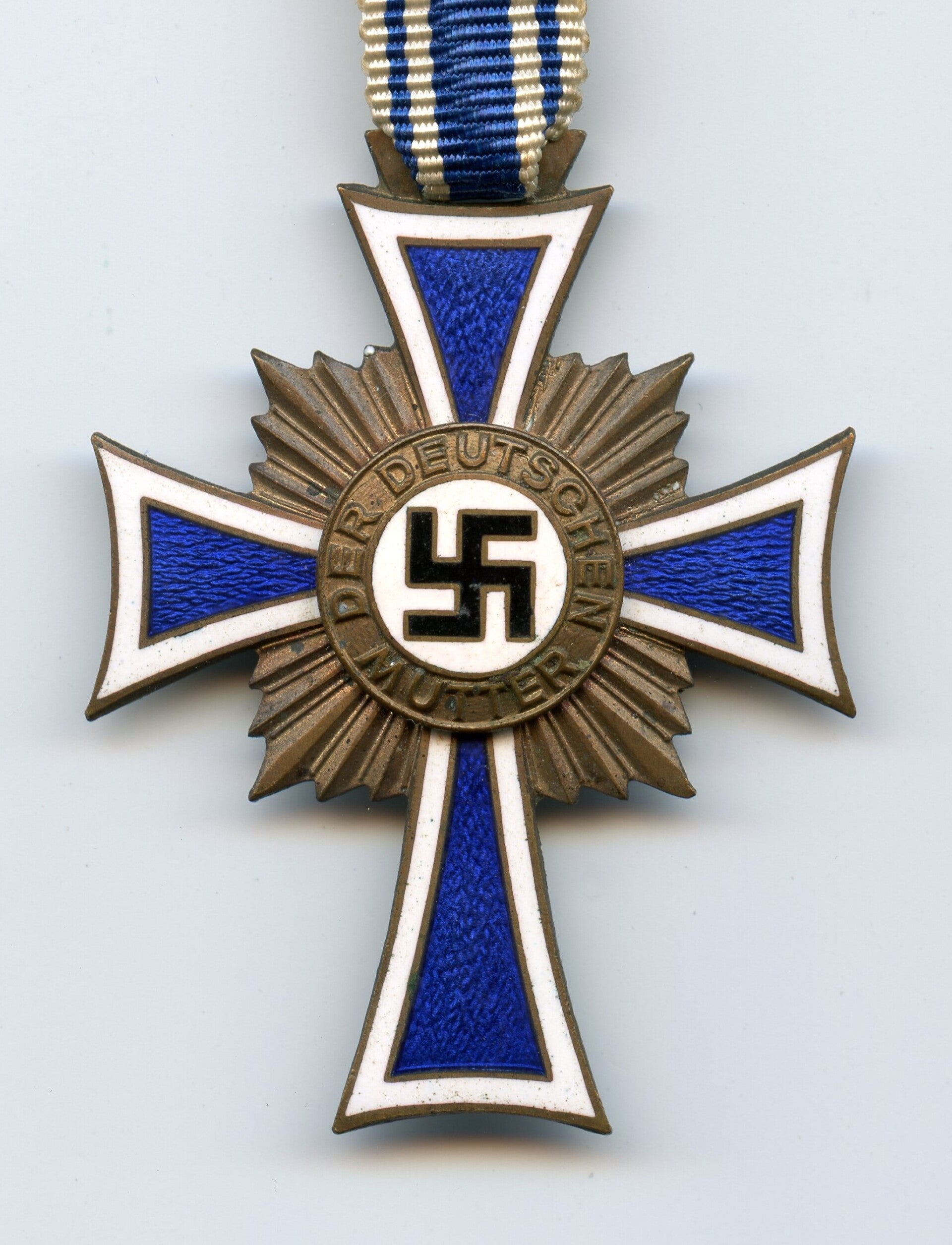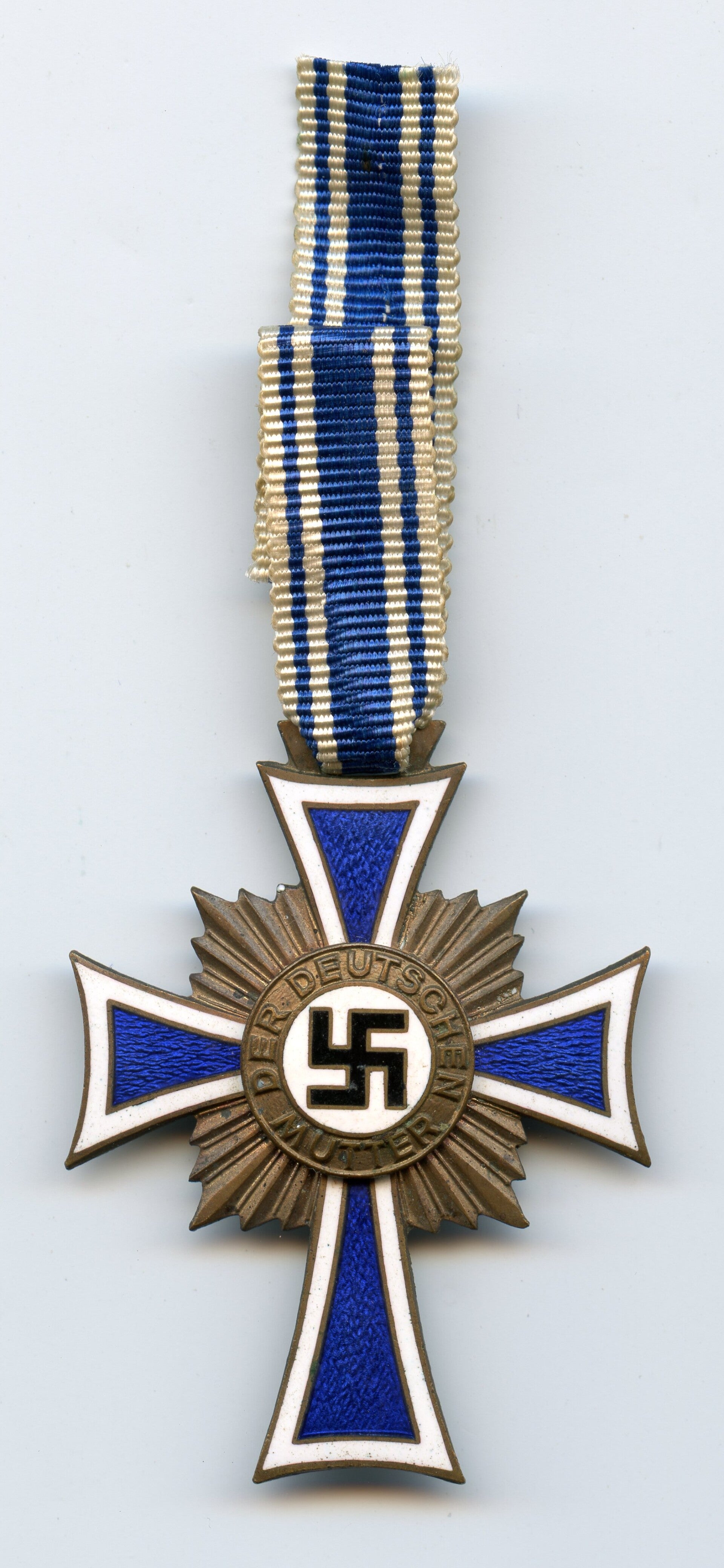 Nice original Bronze Mothers Cross. The cross is made of a tombac construction with all of its enamel intact. The cross comes with its original ribbon. TOP cross! No repairs, no damage.