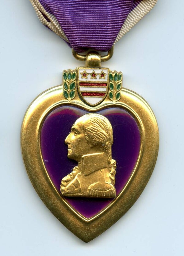 WW2 Original Purple Heart medal. The medal comes with its period original slot brooch mechanism and ribbon. Great medal in a good worn condition. No repairs, no damage.