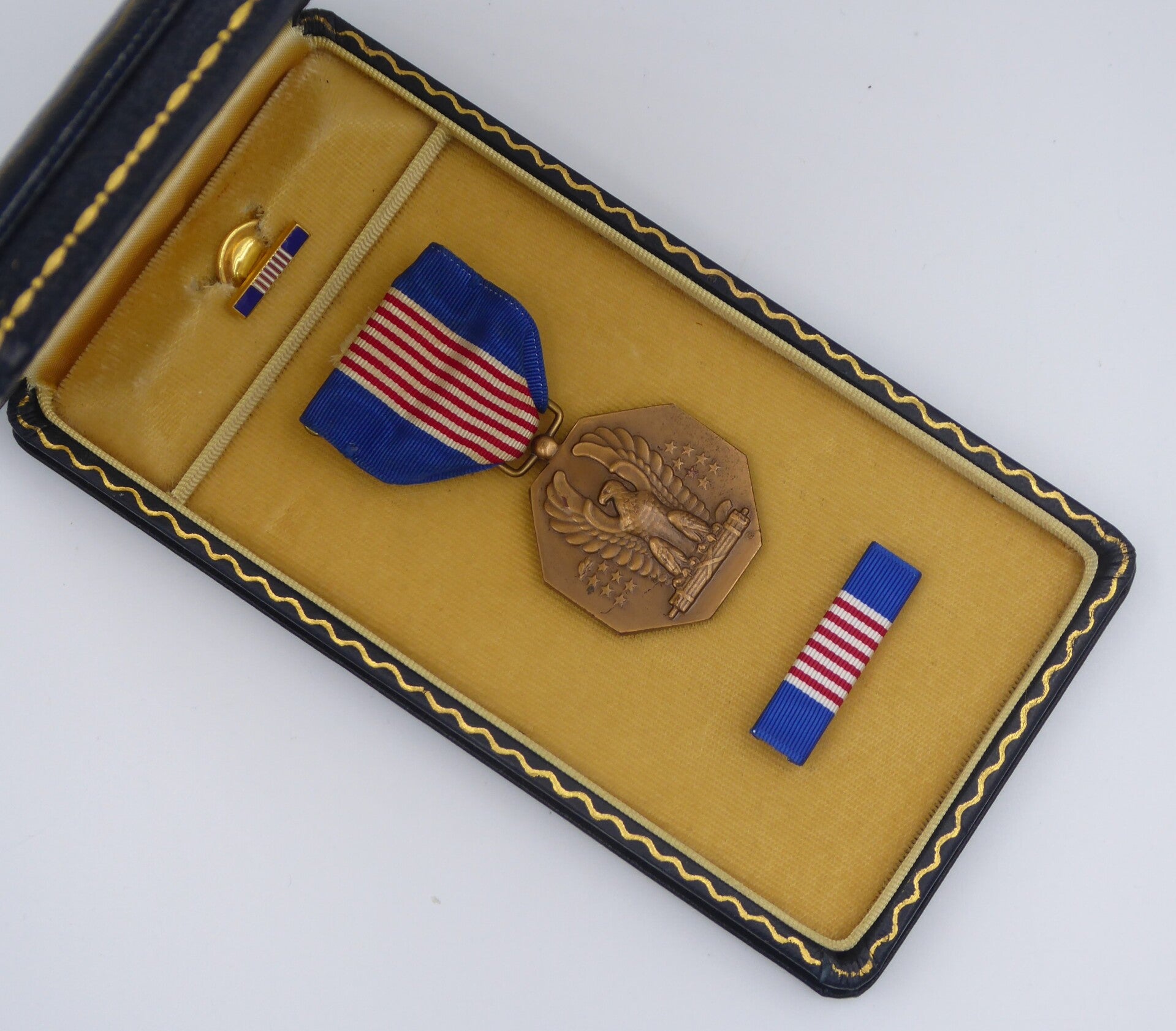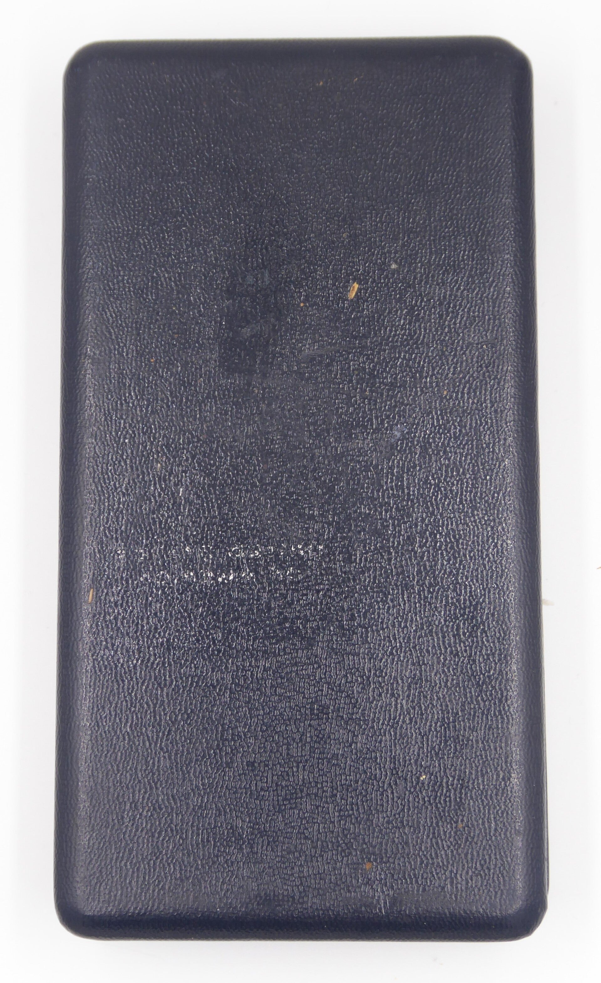 An original complete WW2 cased soldiers medal. The medal comes in its original case of issue together with its ribbon bar and lapel pin. The medal comes with a slot brooch, indicating production during WW2. Great hard to find set in great condition! No repairs, no damage.